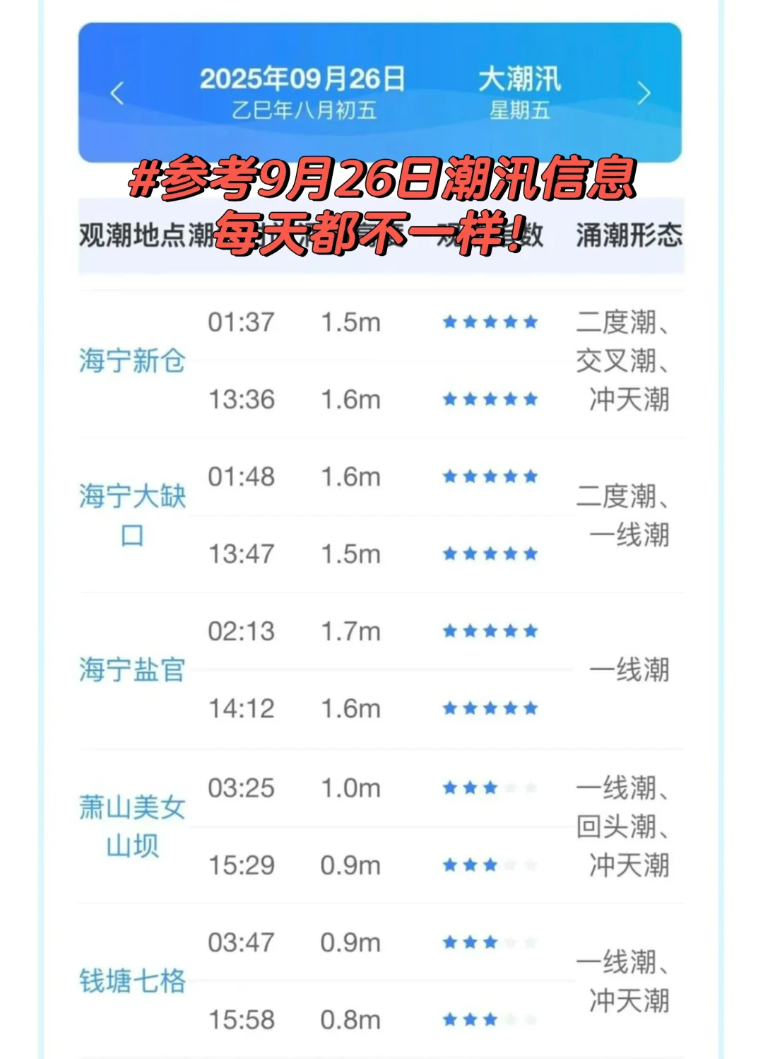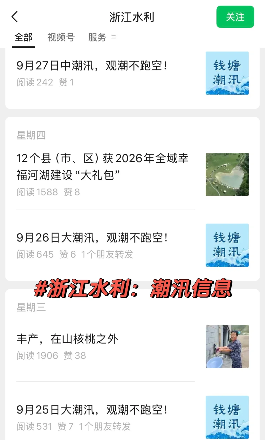 ↪️‘浙江水利’微信,会提前1天公布第二天潮汛信息,如图12-13,当天提前30-50分钟到场等待。