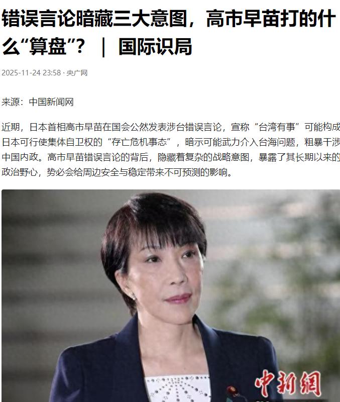 48小时内,中国接到三大好消息,高市早苗不服软不行! 中日交锋正酣的时候,高市早苗大概没料到,短短48小时里中国接连收到的三个好消息,会把她那套强硬说辞打得几乎站不住脚,这下别说继续叫板,能不能稳住自己的阵脚都成了问题。 这事最早的由头,还是中日各自递到联合国的两封信,11月21日中国常驻联合国代表先把信交上去,相当于先占住了道义的高地,而高市早苗这边还在国会里鼓吹要修改“无核三原则”、大幅涨防卫费,想着靠渲染“中国威胁”来给自己的扩军找借口。 结果第一个好消息就来了——东盟那边递来的 “定心丸”。 要知道东盟可是东亚的“香饽饽”,高市早苗本来还想着借着所谓的“印太部署”,派军舰跑东南亚刷存在感——今年日本海上自卫队的印太部署一搞就是7个月,还派了最先进的“矢矧”号护卫舰到处串门,想着拉拢东盟国家站队自己,结果东盟根本不吃这一套。 东盟跟中日韩谈合作的时候明明白白说要坚持开放合作,不搞经贸问题政治化,还想跟中国深化产业链协同,毕竟东亚地区有全链条的产业优势,从研发到销售都能捏成一个整体,这种实实在在的经济利益,可比高市早苗画的“军事安全”大饼香多了。 就别提马来西亚直接公开说对日本的军事扩张不放心,等于直接给高市早苗的“舰船外交”泼了盆冷水,东盟这个定心丸一到手,中国在东亚的基本盘就稳了,高市想靠孤立中国来立威的算盘,第一步就碎了。 紧接着第二个好消息从法国飘过来,高市早苗本来还幻想着拉上欧洲国家给自己壮声势,毕竟她一直想推动北约往印太凑,结果法国压根不接她的茬。 欧洲现在心里跟明镜似的,跟中国搞经贸、科技合作能赚真金白银,犯不着为了日本的一己之私跟中国翻脸,法国这边该跟中国合作的继续合作,该谈的项目一点没耽误,这一下就断了高市早苗想从欧洲找外援的念想,本来就没多少国家愿意搭理她,现在连欧洲的关键角色都不站队,她的强硬说辞就更没市场了。 最让高市早苗坐不住的,还是第三个好消息——美国居然把对华178类商品的关税豁免期直接延长到了2026年。 要知道高市早苗一直把美日同盟挂在嘴边,觉得美国会无条件站自己这边,结果美国反手就给了中国一个台阶下。 这178类产品可不是随便选的,全是美国短期内根本没法替代的,比如太阳能设备、血压监测仪这些工业和医疗用品,说白了美国是务实的,不可能为了日本的政治表演,断了自己的供应链。 这下可好,高市早苗抱的最大一根大腿先松了口,她在国会里喊得再凶,美国这边先跟中国谈妥了,她那套“联合抗华”的戏码,直接演不下去了。 反观高市早苗这边,可真是墙倒众人推。别说大国愿意支持她了,周边国家个个都对她防着一手,泰国前副总理直接直言她的言论威胁亚洲和平,就连日本国内,都有民众跑到首相官邸前抗议她的不负责任。 她自己还想着靠鼓吹“存亡危机事态”来推进修宪、扩军,甚至想把核武器引进日本,可今年正好是中国人民抗日战争暨世界反法西斯战争胜利80周年,她在这个节骨眼上搞这些小动作,不光中国不答应,整个亚洲受过日本侵略之苦的国家都不答应。 政治这东西,拼的终究是实力和人心,高市早苗这边,实力上比不过中国的发展势头,人心上既没拢住周边国家,也没稳住国内的反对声音,就连自己最依赖的美国都先软了下来,她就算想硬着头皮不服软,也没那个资本了。 毕竟喊几句硬话容易,可真到了拼实际利益和国际支持的时候,她那点手段,在48小时接连落地的好消息面前,根本不够看,不服软也得服软。