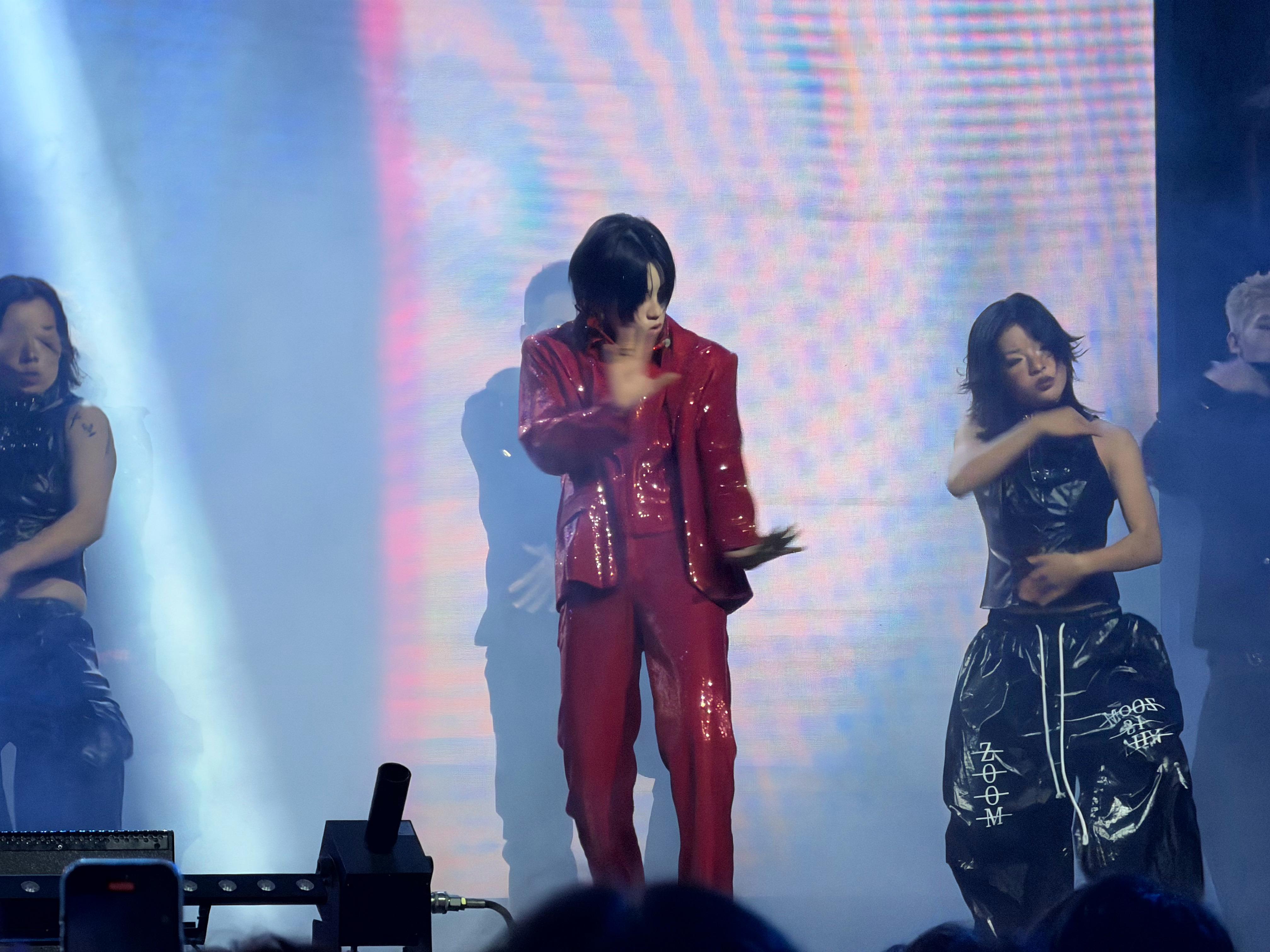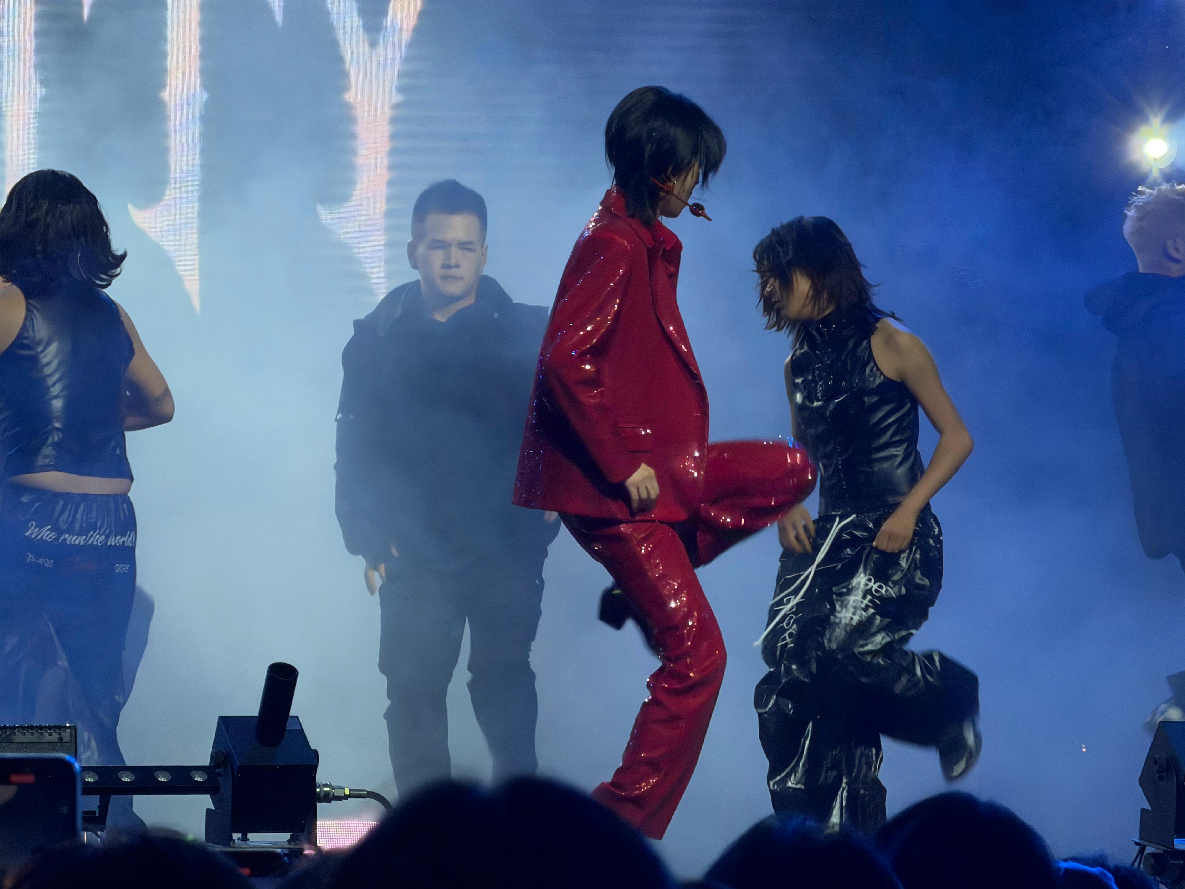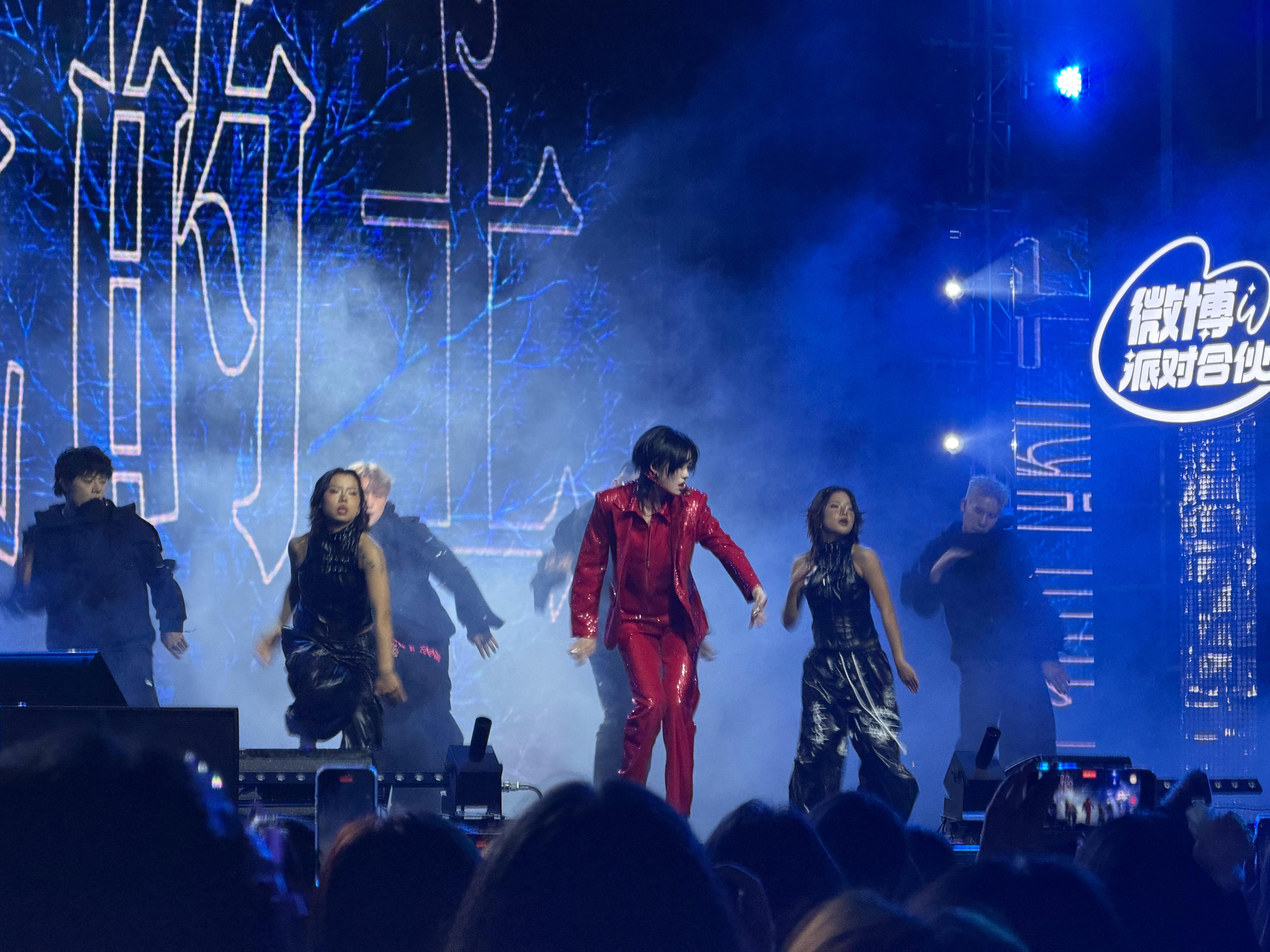 红色亮片西装跳舞真的好a啊陆柯燃ok生日见面会微博派对合伙人
