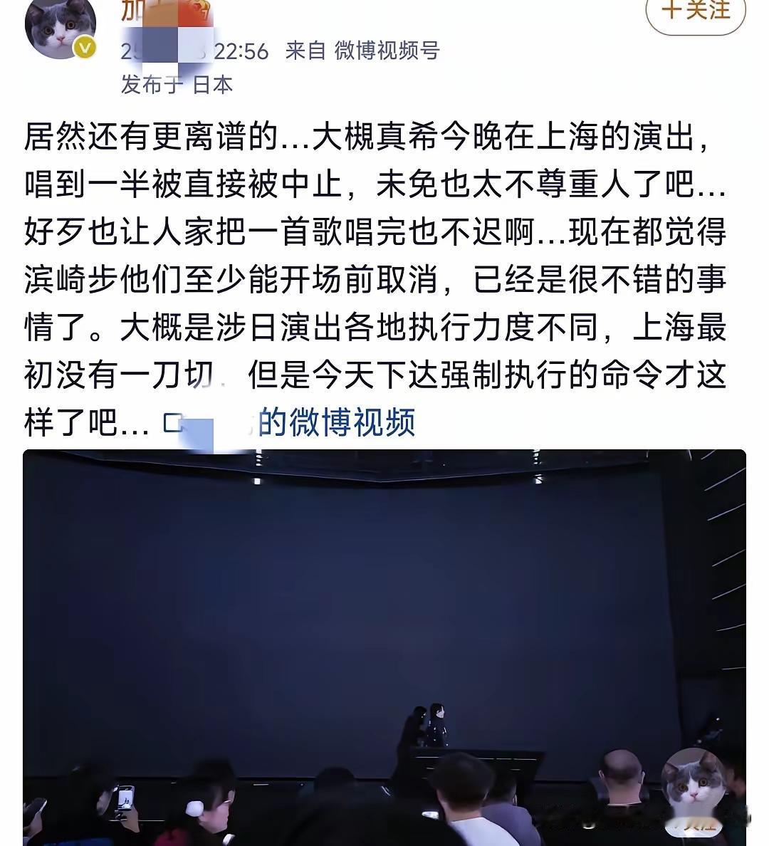 日本歌手大槻真希在上海的演出中途被叫停, 日本歌手滨崎步上海演唱会被取消, 网上有人替她俩叫屈,说什么“离谱”、“太不尊重人”“为难一个歌手”等等! 这一切都是日本当局错误言论导致中日两国关系紧张,错的是日本当局。 劝这些人别当“圣母”。 日本艺人在中国人演出受阻,所以责任都应该由日本政府承担。想替日本艺人发声的,建议也去谴责日本政府。 这个跟格局无关,也跟不尊重人无关。 这两个日本女歌手如果明事理的话,她们应该回去谴责日本政府,为什么不和中国睦邻友好。 是日本政府挑事才让她们的演出受阻。