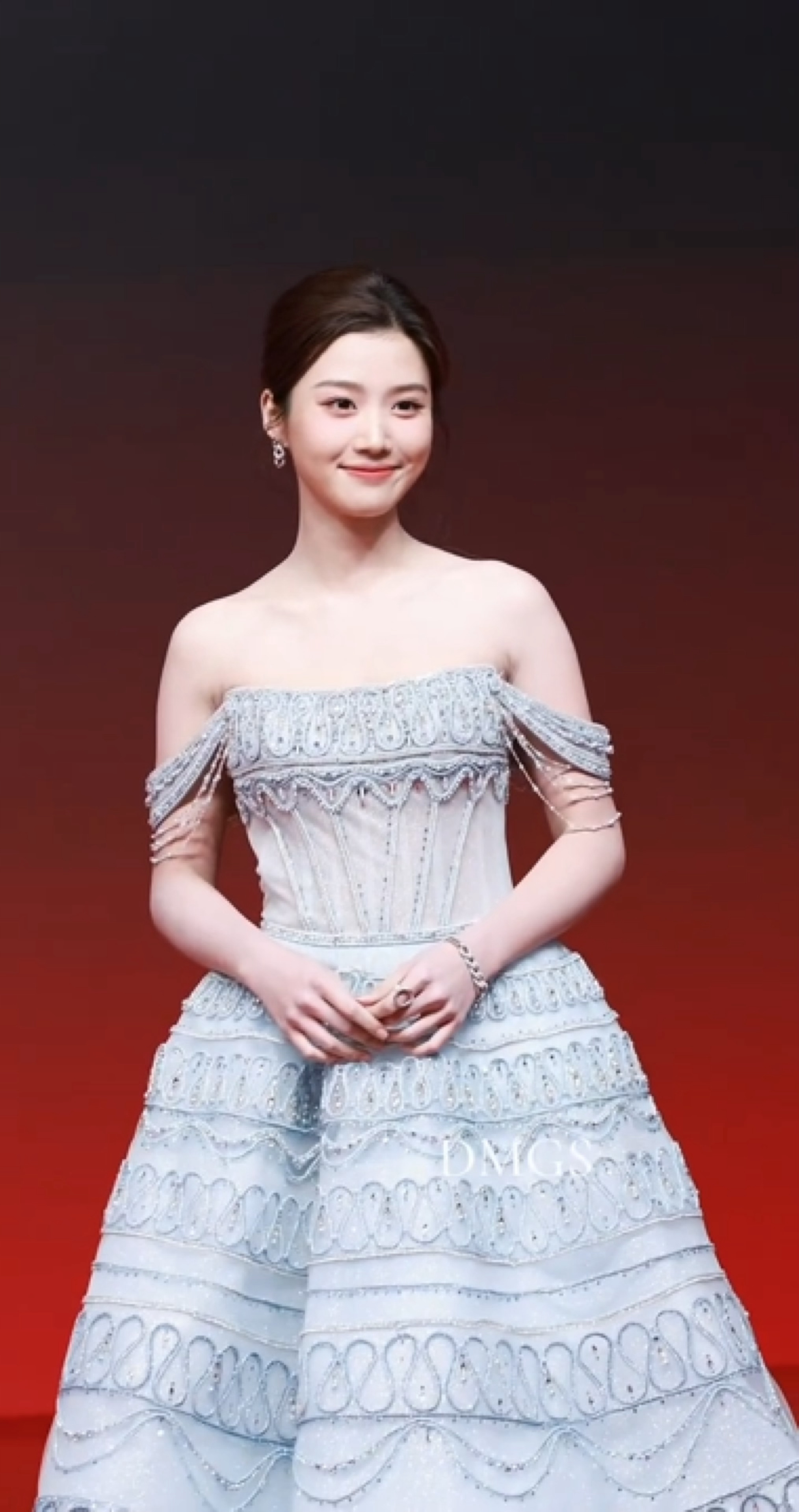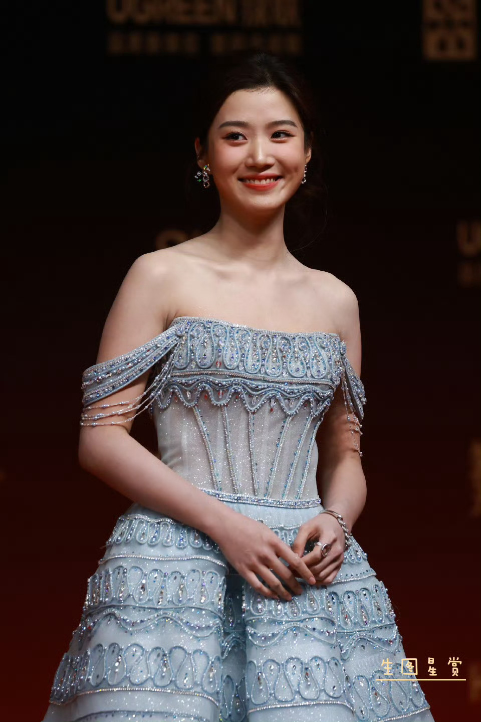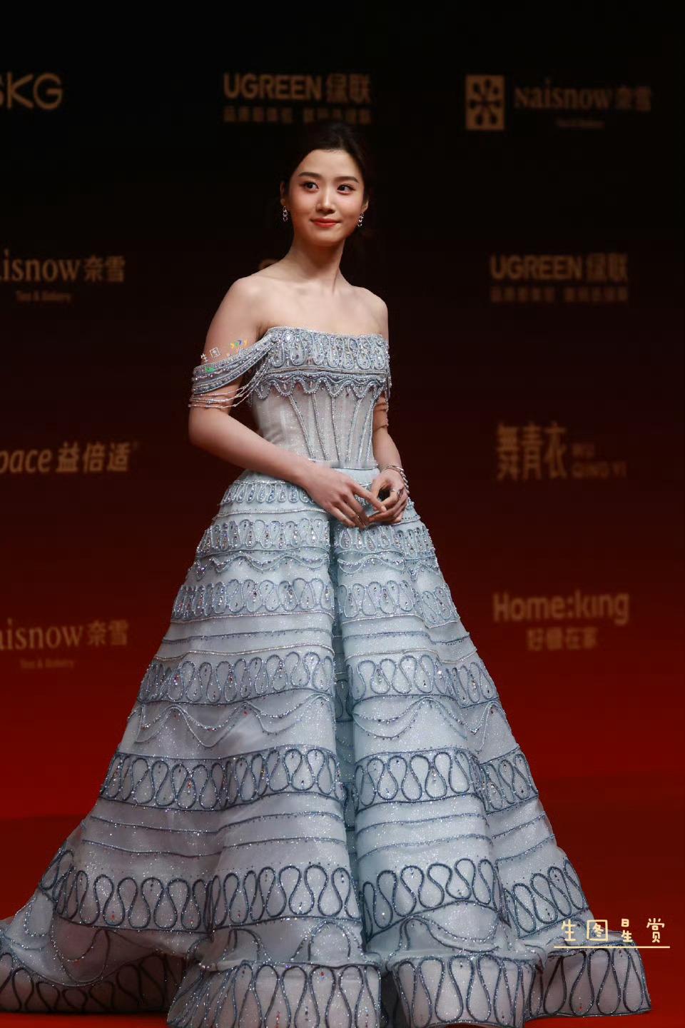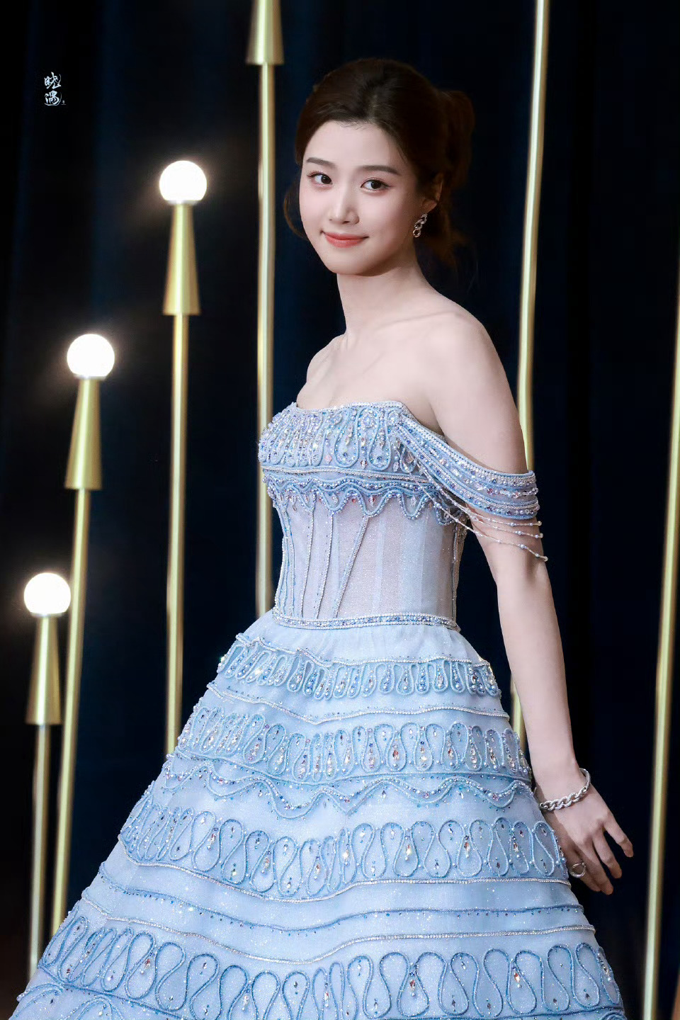 看得出她是公主✨卢昱晓蓝色闪钻长裙