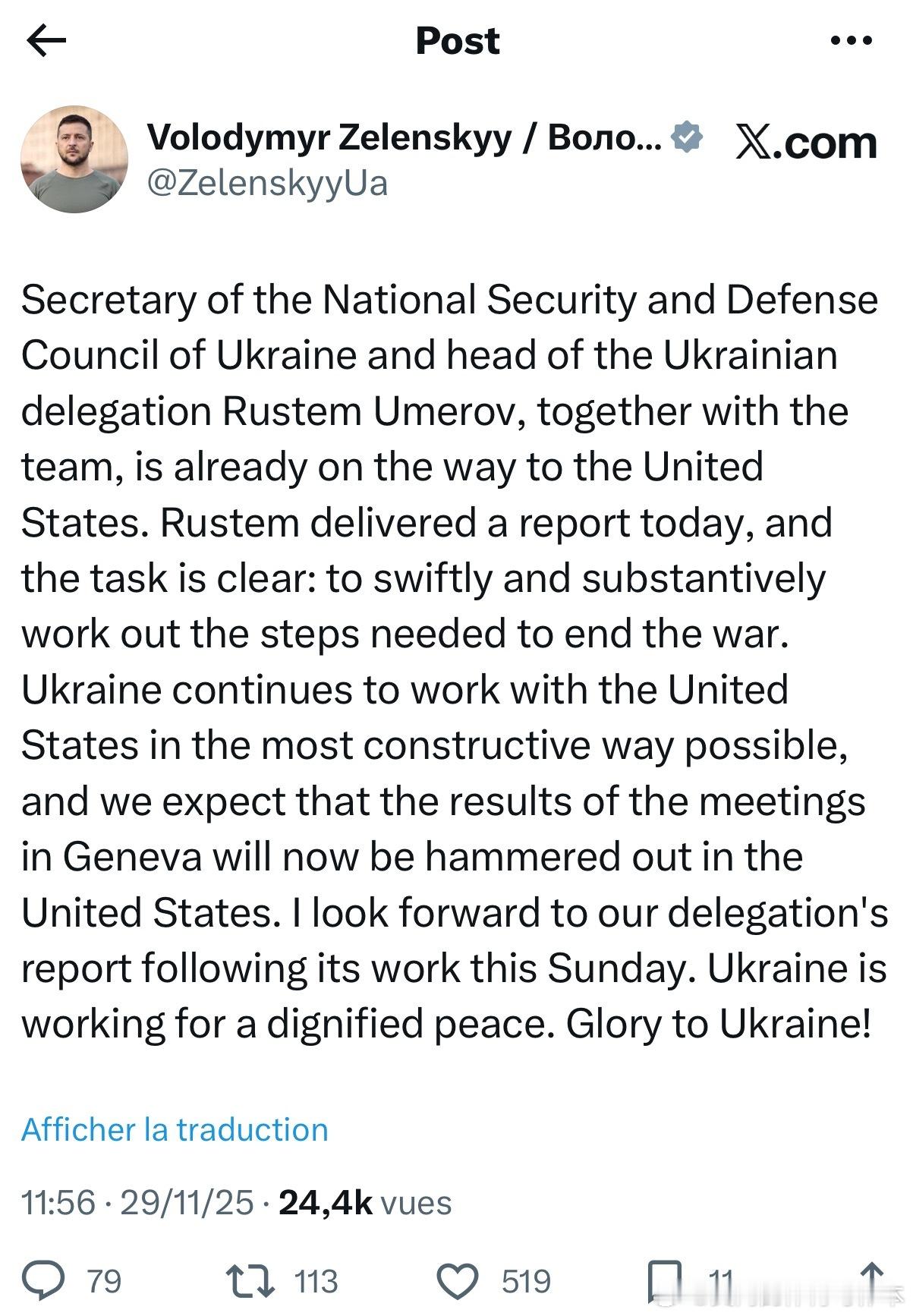 【黄金时代】快讯,泽连斯基宣布,乌梅罗夫前往美国递交更新的和平协议报告泽连斯基:乌克兰国家安全与国防委员会秘书兼乌克兰代表团团长鲁斯捷姆·乌梅罗夫及其团队已启程前往美国。鲁斯捷姆今天提交了一份报告,任务明确:迅速而实质性地制定结束战争所需的步骤。乌克兰将继续以最具建设性的方式与美国合作,我们期待日内瓦会议的成果将在美国得到落实。我期待我们代表团本周日提交工作报告。乌克兰致力于实现有尊严的和平。乌克兰万岁!美国和欧洲当代史川普主义研究热点现场海外新鲜事