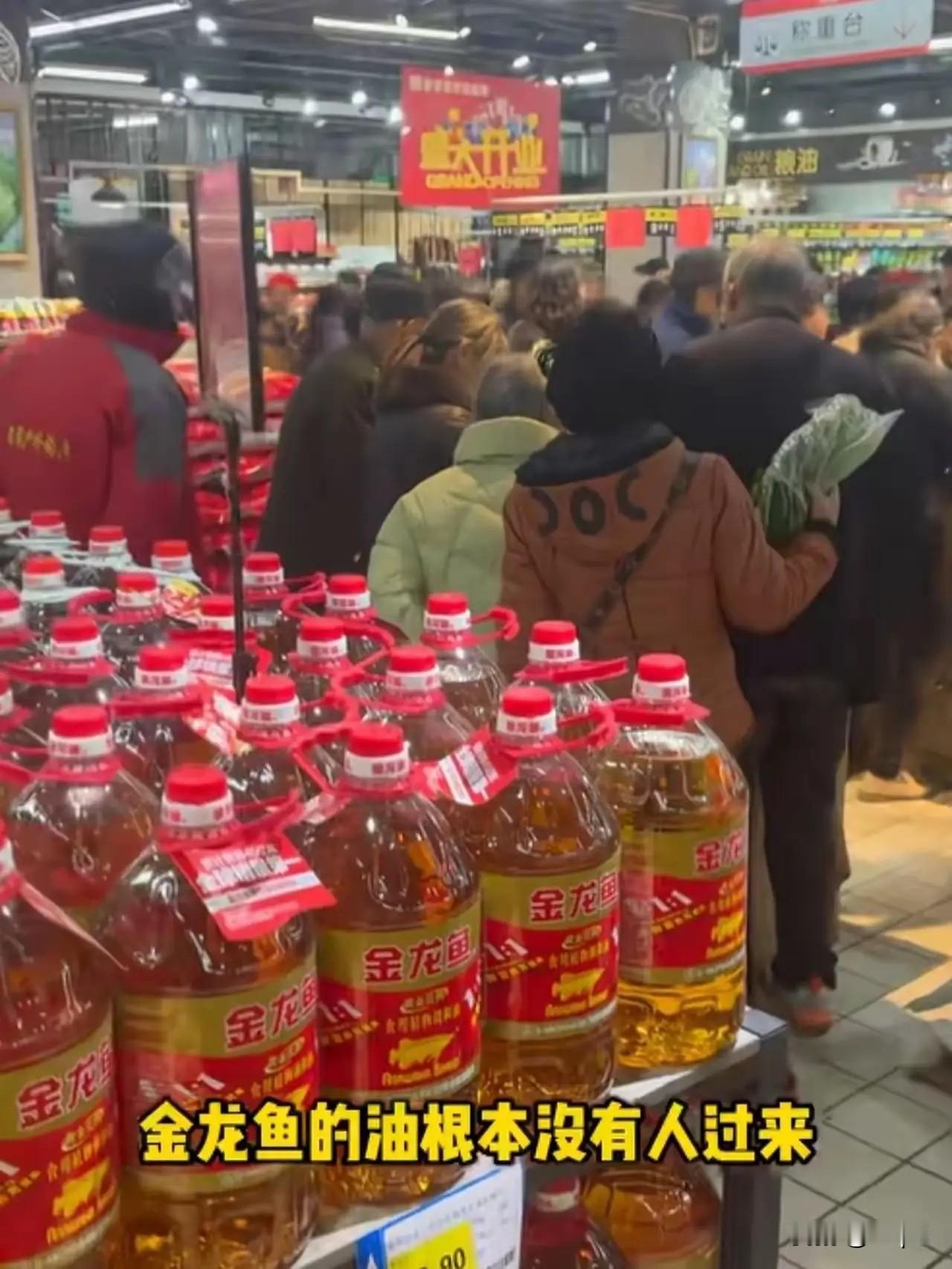 今天逛超市直接看傻了! 金龙鱼油整排堆得满满当当,人来人往的,愣是没人敢伸