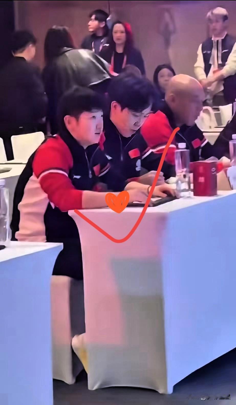 天台要站不下了[捂脸] 王楚钦孙颖莎成都混团抽签! 两个人这次坐在一起喽! 本来想说谁抽都一样, 现在这能一样吗? 王楚钦孙颖莎坐在一起, 感觉像一场梦一样, 这样美好的画面已经好久好久没见过了, 这也太爱看了!契,哪是“谁抽都一样”能概括的? 其实他俩的同框从不是偶然,训练时0.3秒就能完成交叉补位,私下里递水捡球拍的小细节藏都藏不住,连肖指导都默认孙颖莎能“管得住”王楚钦。这次抽签还有周到姐在后边盯着,估计俩人和肖指导都得偷偷“收敛”点小互动,想想就好笑! 比起单纯嗑颜值,更戳人的是他们从并肩起步到顶峰相见的羁绊,同框里藏着的是国乒新生代的热血与靠谱。你觉得他俩这次抽签时,私下偷偷聊了啥?是战术还是八卦呀?