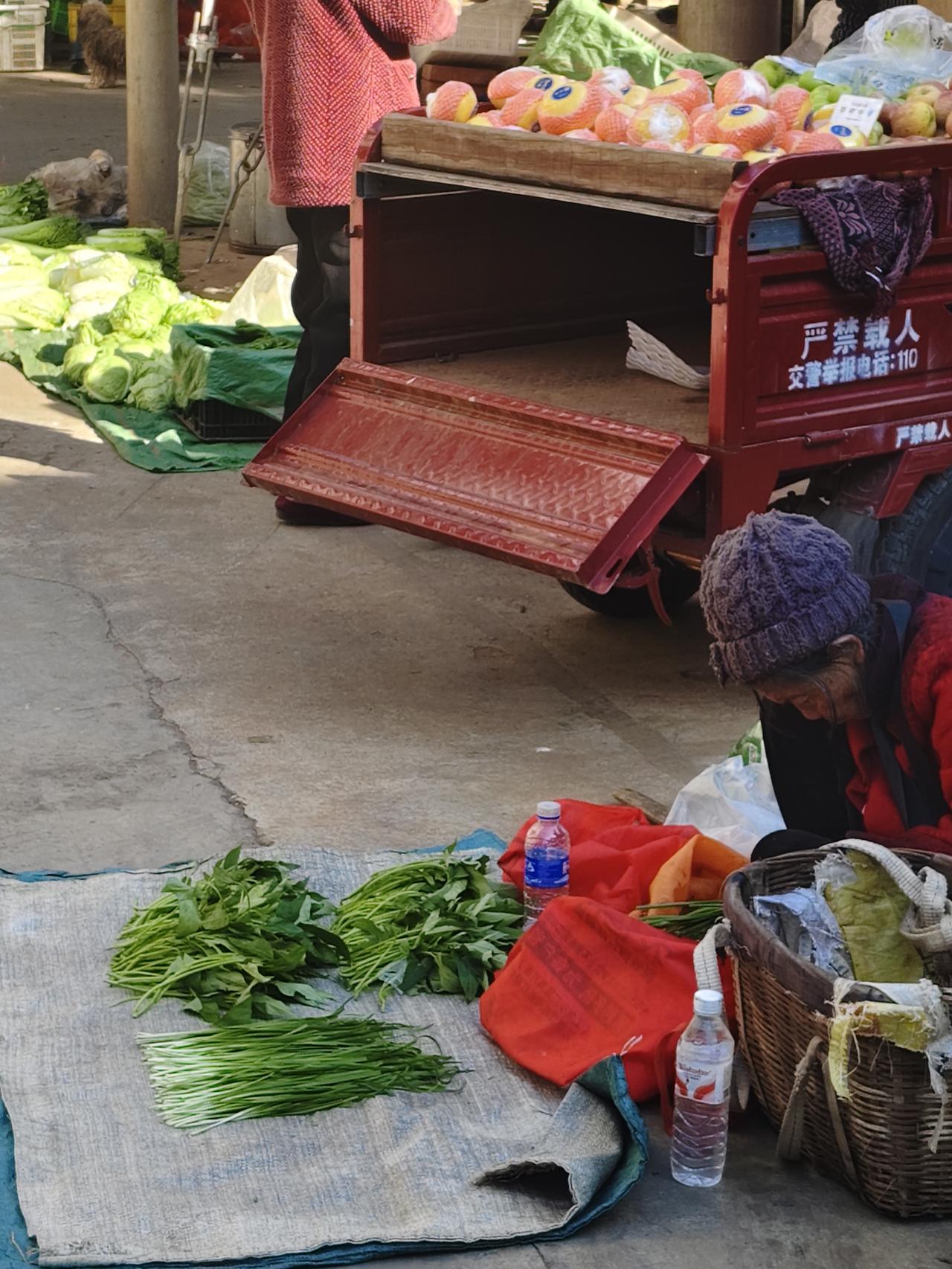 我在元谋赶大集 在我看来,最能代表当地风土人情的地方,那就是农村大集。在元谋就有这么一个农村大集——官能村大集。 官能村大集,离我们居住的宾馆只有两公里左右。我和老伴商量今天去走一趟。 当走到村头,我们见到了“官能”两个大字的村名标志,可集市呢?人呢?难道今天没有集吗?等转过一个弯儿,我看到一个高台阶上的大树下,站着一个左手拇指缠着绷带的中年男士。我走上前去问道:咱们村的大集在哪儿呢?他从台阶上缓缓地走下来,用右手指着前方的路告诉我,顺着这条路向下走,再向左转个弯儿就到了。今天不是礼拜天,赶集的人会少些。他又说:你们来时走的路绕远了,等逛完大集顺着街道的路一直往下走,就到了城区了。他的一番话既纠正了我们的错,又指出了正确的路,我连忙表示感谢。 随后,我问:你的手怎么了?狗咬的。野狗?不,我自己养的狗。那为什么?我也不知道,我给它喂食的时候,它突然咬了我。我问:打针了吗?手还肿吗?他说:打了,两天了好多了。我轻轻的按了按他的手,还是有些肿。我说:您多保重。 转身我在想,随着养狗人越来越多,流浪狗的数量也在急剧增加,人被狗所伤的事件层出不穷,被自己养的狗所伤的事也屡见不鲜。有时候呀,狗真的不是人类的朋友! 进到村里,我们发现官能村有不少闲置的土地,有的被人开挖出来,种上了各式各样的蔬菜,这些菜无一例外的被人们管理的井井有条,菜也长得齐齐整整,生意盎然。我又惊奇的发现,路边还有一大块玉米地,在这个隆冬季节玉米长得油绿而挺拔,在我的家乡是根本不可能的事。 今天,集市上的人不是很多。来这里卖菜的大部分都是官能村及周边村的菜农,老太太居多。她们面前摆的菜数量很少,但都分门别类,并且洗得干干净,一切都显得那样的新鲜脆生。我们和这些售卖人聊天,深知他们的不易和劳动的艰辛。非常感谢他们的辛勤付出,让我们这些候鸟人能吃上如此新鲜的蔬菜。 逛完了集市,我们按照那个中年男士指的路,很快就回到了城里。 这个集赶的好,让我们对元谋多了一些了解,对元谋人又多了一份爱意。所以我说:不虚此行!2025年11月28日写于元谋元谋市场