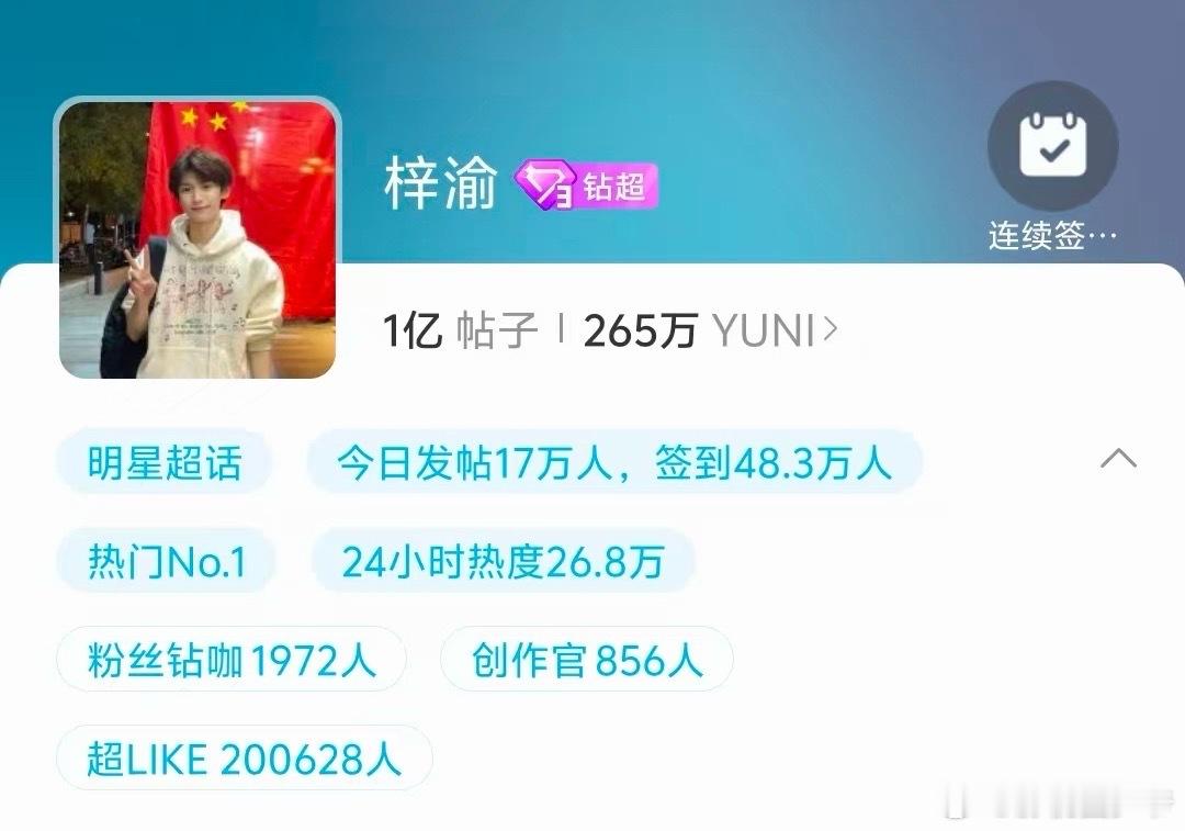 梓渝超话发帖量破亿各位是你们的参与!看了这张图是否热血起来了呢???