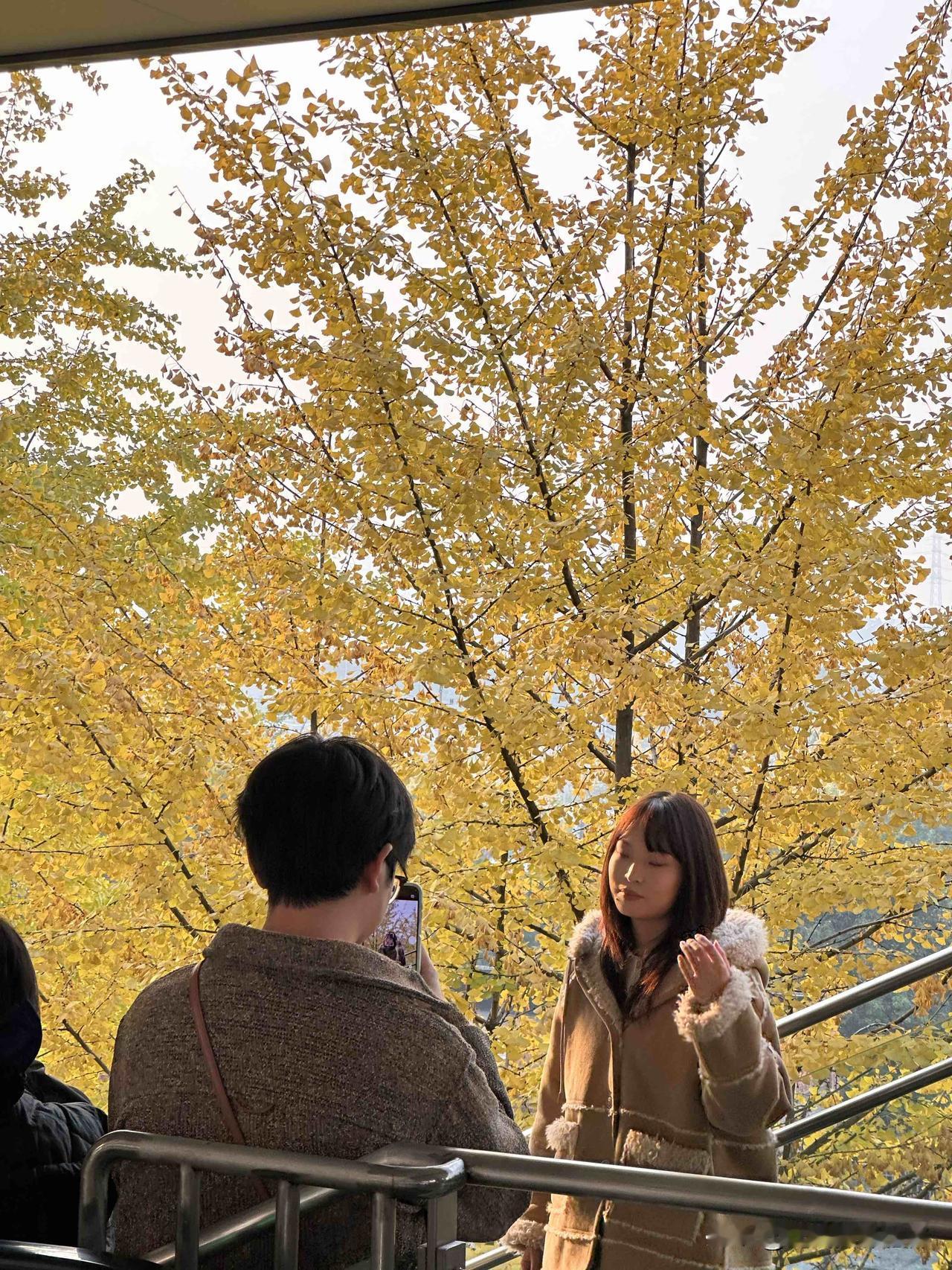 11月29日,重庆园博园地铁站,真的好火爆啊!好多漂亮小姐姐来这里打卡2025年秋天重庆最美的银杏树秋色地铁站……金黄灿烂的银杏树,真的是秋色浓郁啊! 只可惜,这里虽然秋色非常浓郁,肉眼看起来非常美丽,但是,要想拍出好看的照片,确实是很难的哦! 当然,漂亮小姐姐,无论站在那里,无论怎么拍,都是好看的,这就是重庆美女啊!