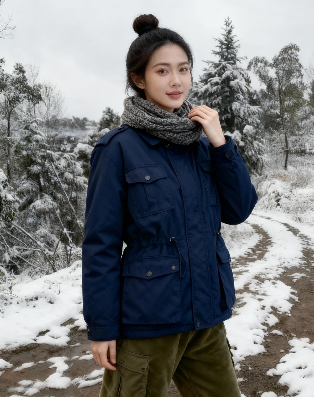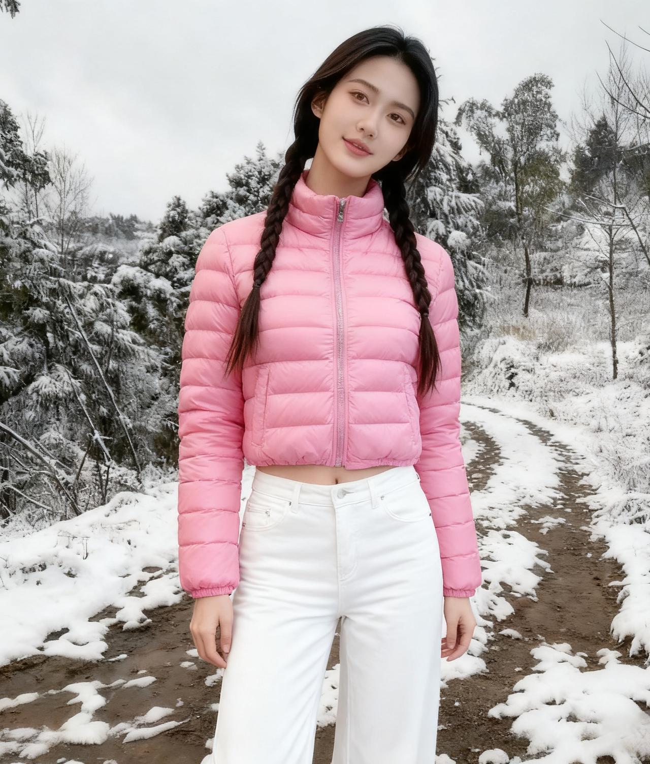 厚衣轻裹雪光柔,笑靥凝香入眼眸。 风过疏林摇碎玉,春心暗向远村流。