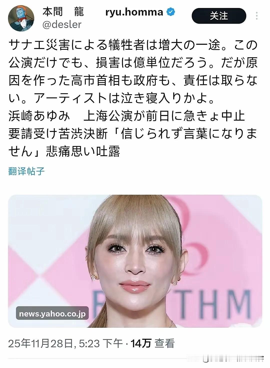 11月29号,今天日本媒体基本没有在讨论高市早苗和台海问题的了,而都把主要的舆论力量都放在了两件事情上——一个是著名歌手滨崎步在上海的演唱会被取消;另一个是一位日本歌手在中国演出时,中途被拉闸停演。 滨崎步团队工作人员站在梅赛德斯奔驰文化中心门口,看着音响设备被重新装进集装箱。那台特意从日本空运来的特制混响器,箱子上还贴着"上海站专用"的标签。 中国承办方负责人接完电话后,默默把节目单上《Dearest》的曲目用红笔划掉——这本是安排给中国歌迷的惊喜安可曲。场地方透露,取消通知是在彩排前两小时接到的,连舞台特效团队都没来得及测试干冰机。 那位被中止演出的日本歌手更尴尬。当时他正在唱第二首日文歌,副歌部分刚唱到"跨越国境线"这句词,场内电源突然跳闸。 观众手机录下的视频里,能听到后台工作人员用江浙方言喊:"先把乐器电源拔了!"现场粉丝后来发现,歌手团队提前报备的曲目清单里,其实有两首中文翻唱曲还没来得及表演。 日本雅虎新闻的评论区炸了锅。有网友贴出去年某韩国女团在中国演出时LED屏故障的照片,质疑这是"模式化操作"。 但知情人士透露,滨崎步演唱会其实卡在了文化批文续期环节——由于日方经纪公司临时更换了三位伴舞演员,根据我国《营业性演出管理条例》,外籍演出人员变更需要重新备案。 涉事日本歌手的遭遇另有隐情。文化市场管理部门工作人员透露,该歌手2022年曾参与某个有争议的音乐节活动,而我国演出审批系统对此类记录存在预警机制。当时现场执法人员的手持终端确实收到了"节目内容与报备不符"的提示,这才出现了拉闸一幕。 这些事件在演出行业内部引发连锁反应。多家国内演出公司连夜核查旗下海外艺人的报备文件,有公司甚至暂停了十二月份所有日籍艺人的商演申请。 北京某文化经纪公司的法务发现,日本艺人合同里通常藏着"政治风险免责条款",这类条款现在需要重新谈判。 更微妙的转变发生在粉丝群体。滨崎步中国歌迷会负责人晒出2009年她在上海演唱会用中文问候观众的视频,评论区有人贴出她去年为中日友好文化交流题字的照片。但也有年轻粉丝在微博抱怨:"攒了三个月生活费买的VIP票,现在退票要扣20%手续费。" 日本驻沪文化机构的工作人员透露,他们正协助日方艺人理解中国复杂的报批流程。有资深演出商说得更直白:"现在日方艺人申报时,连社交媒体点赞记录都要清理,比政审还仔细。" 回头看这两起事件,文化交流的天平正在重新校准。当东京电视台用十分钟报道滨崎步演唱会取消时,他们或许该思考:为何日方艺人能顺利登上上海爵士音乐节,却难登跨年晚会的舞台?这里面的界限,从来不只是艺术问题。 各位读者你们怎么看?欢迎在评论区讨论。