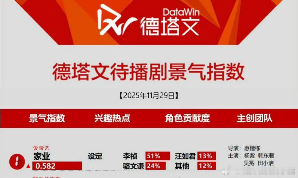 杨紫家业再登景气指数第一,真的是有好多人在期待啊
