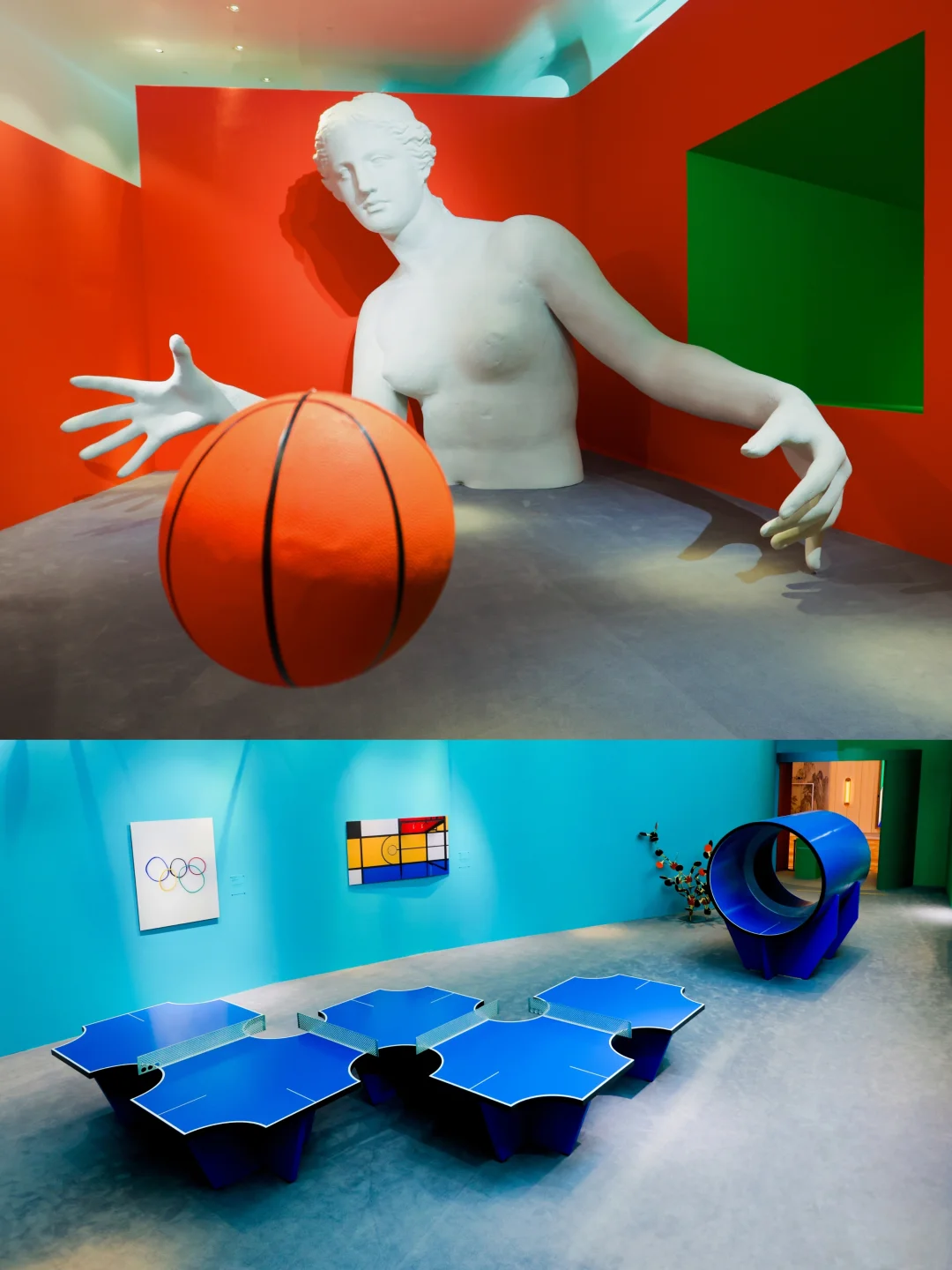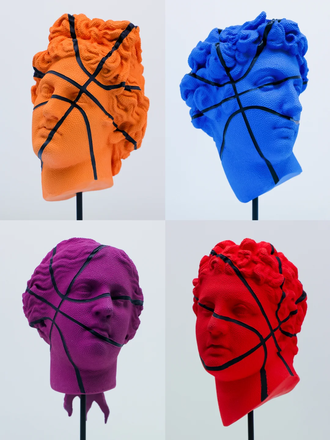 当🏀变成了古希腊英雄与神祇的头像,艺术家将当代审美下的偶像符号塑造出新的美学形象,以矛盾与反讽的修辞幽默回应当代美学
