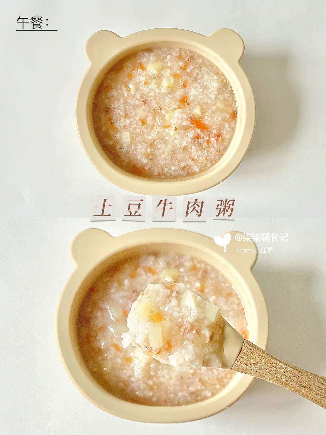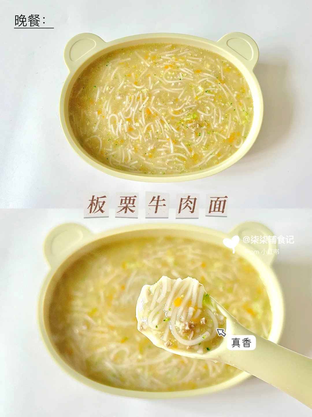 👧:10个月➕26天 ⏰:午餐11:00 🥣:土豆牛肉粥 🤌:宝宝版午餐肉 🍽️:水果:莲雾 ⏰:晚餐18:00 🥣:板栗牛肉面 🤌:红枣米粉小泡芙 午餐宝宝午餐肉和土豆牛肉粥,午餐肉好香~柒柒吃完粥还吃了1块午餐肉哈哈😆吃不完的午餐肉放冰箱冷藏,吃的时候再蒸一下就可以啦,3天内吃完哦~ 晚餐板栗牛肉面和红枣米粉小泡芙,这泡芙我可以炫10个,大人小孩都能吃,太香了吧!!!要不是柒柒吃不完,都轮不到我吃🥹 ⚠️食材分量根据宝宝的食量添加。 ⚠️食材大小根据宝宝的咀嚼能力处理。