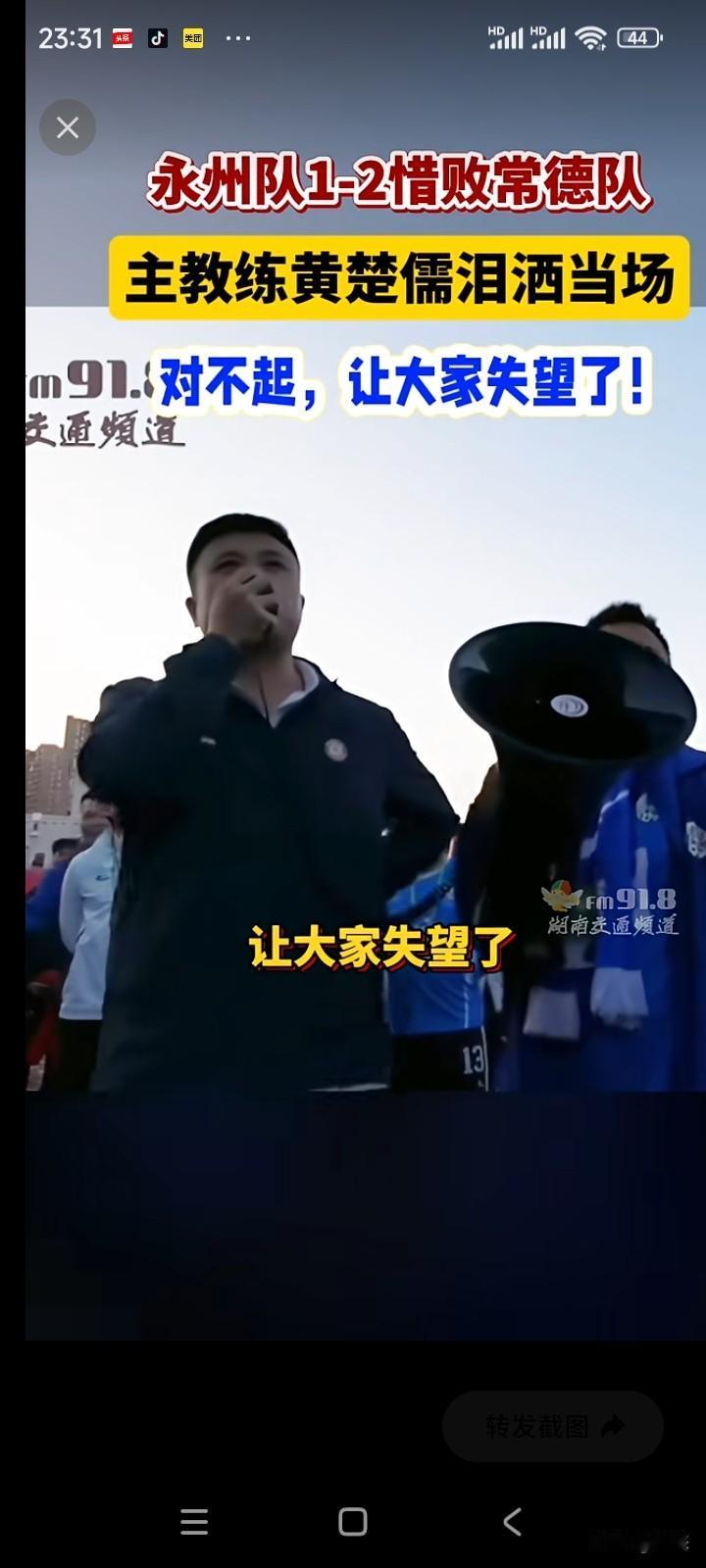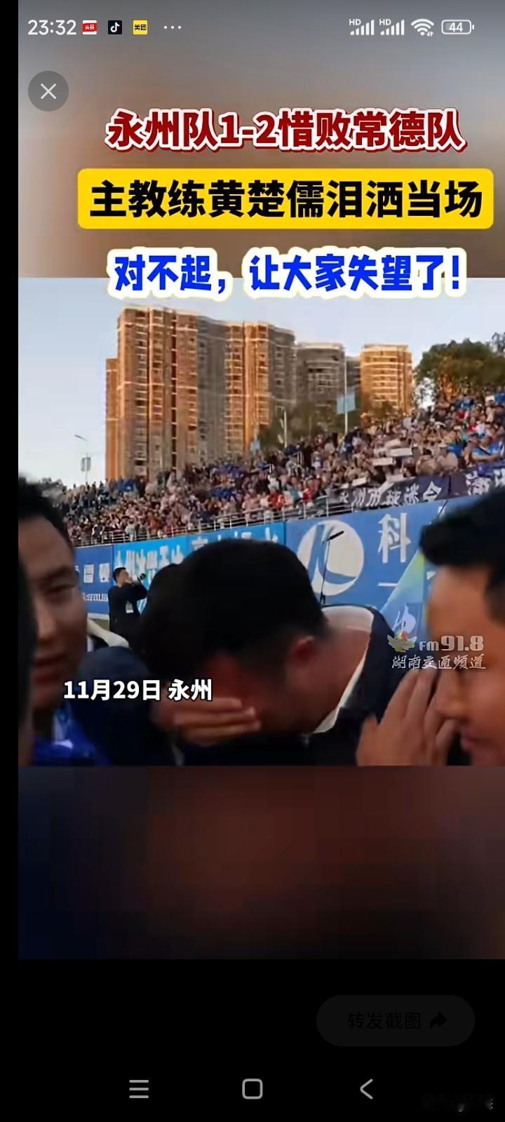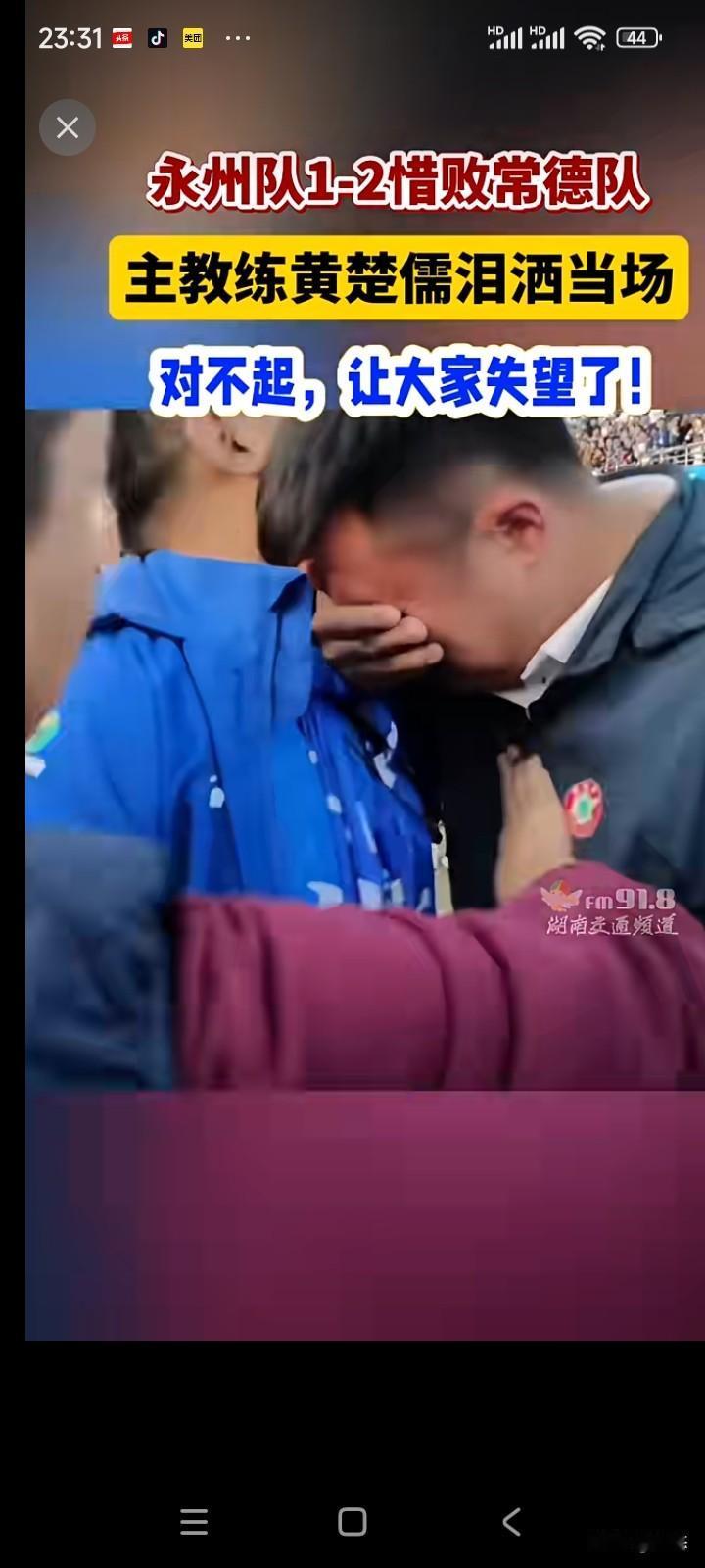 永州对阵常德,1比2输球。赛后教练和球员对球迷说的话,有点心疼他们。看到黄教练流泪,说实话,作为永州人。 有点感动,输赢是兵家常事。为什么他们那么在乎,我相信那是对足球的热爱,对球迷以最好的状态踢球。 有些人说,黄教练爱说什么大话,永州实力就那样。10轮不败后,就有点飘了。 我相信球迷喜欢的是永州队那种拼搏的精神,永不放弃的精神。不管怎么样,输球,理性球迷也喜欢。尽力就好。 你们怎么看呢?流泪是输不起吗?