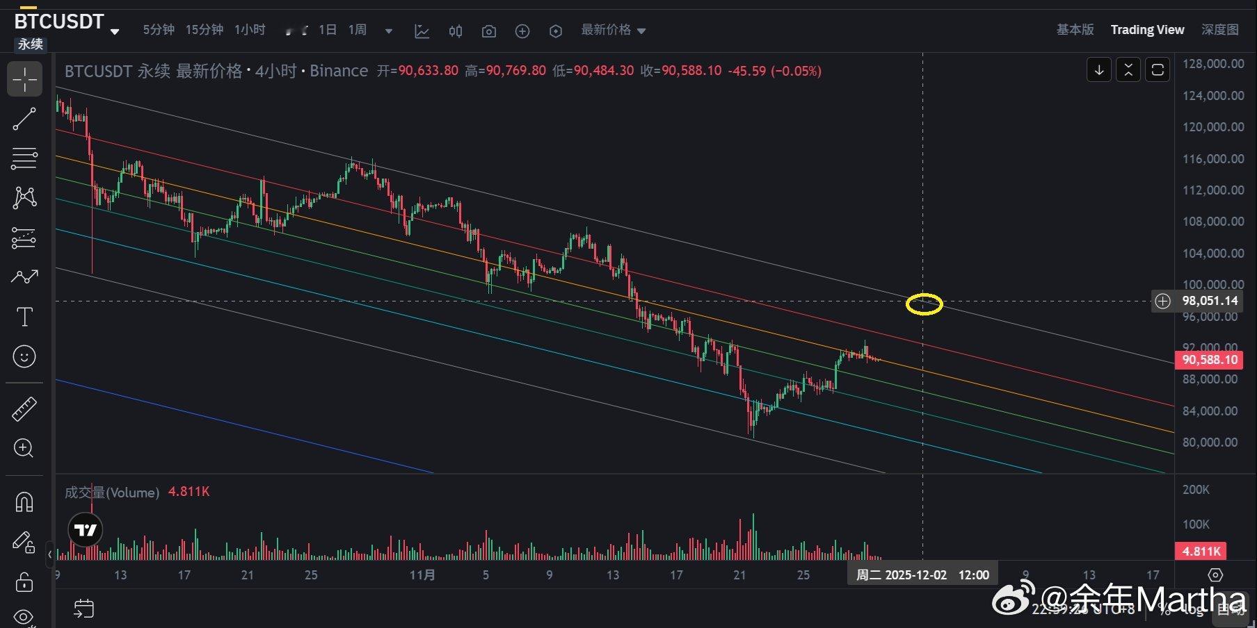 如果比特币后续有可能反弹至 9.7-9.8万这个价位区间的话,请不要吝啬手中的子弹,狠狠地做空BTC和以太坊。结合多头的量能和订单薄上的委托买盘金额数据,以及12月复杂的不确定性因素,我个人依然认为,BTC后续反弹到9.7-9.8万的概率很低,只有20%。比特币后续反弹高位止步于9.3万的概率较高:80%