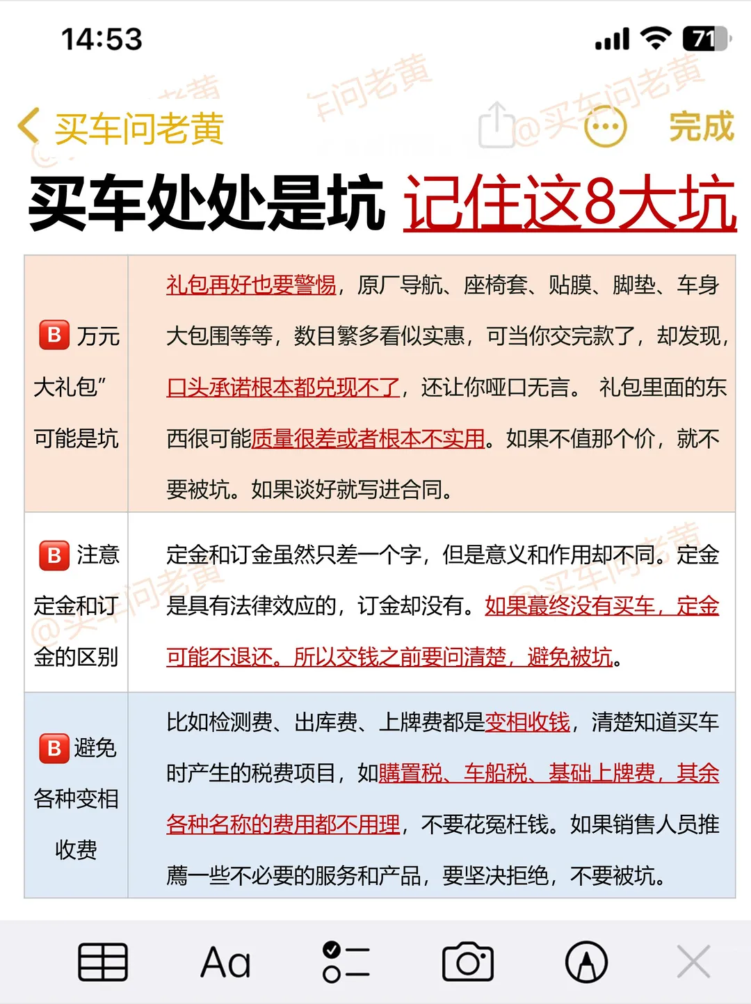 "这车机系统好卡啊""后排空间比XX车型小好多"...记住!每个缺点都是你砍价的子弹!