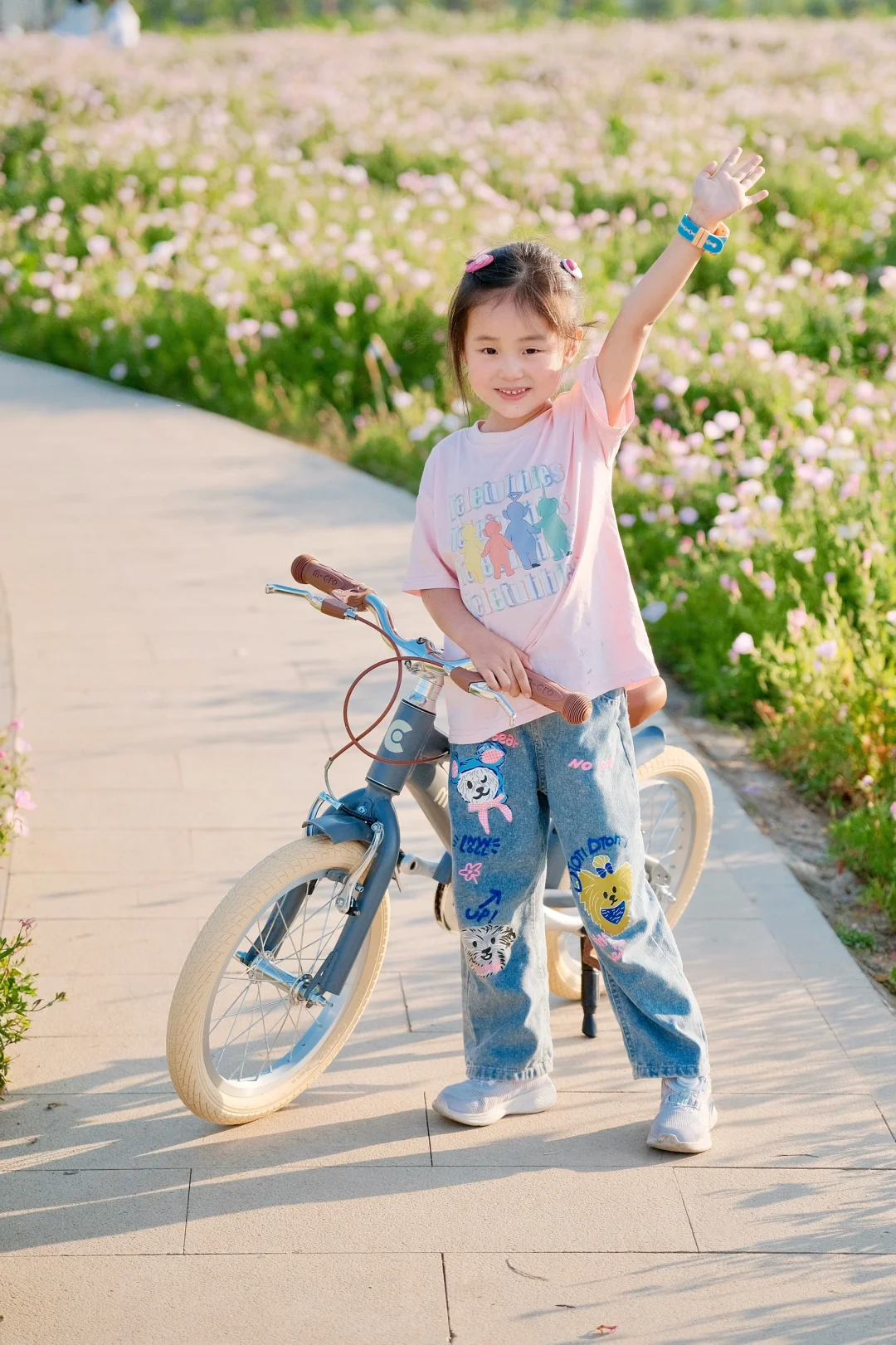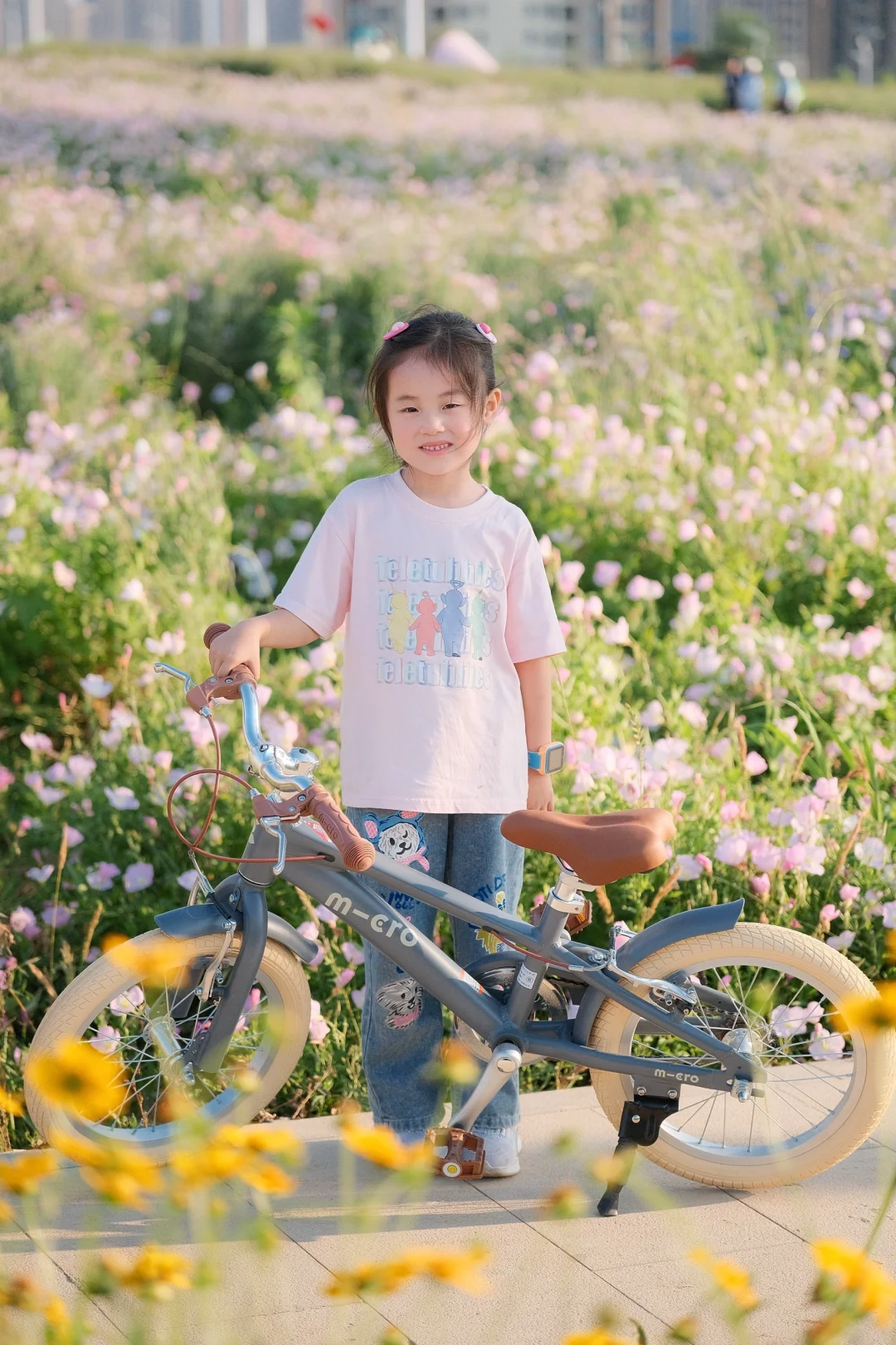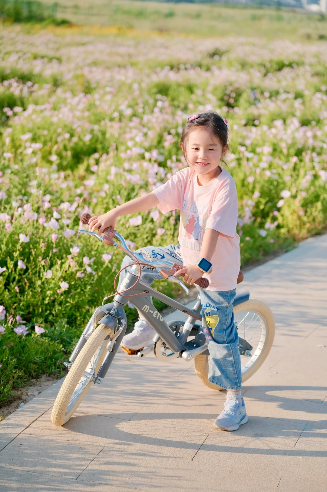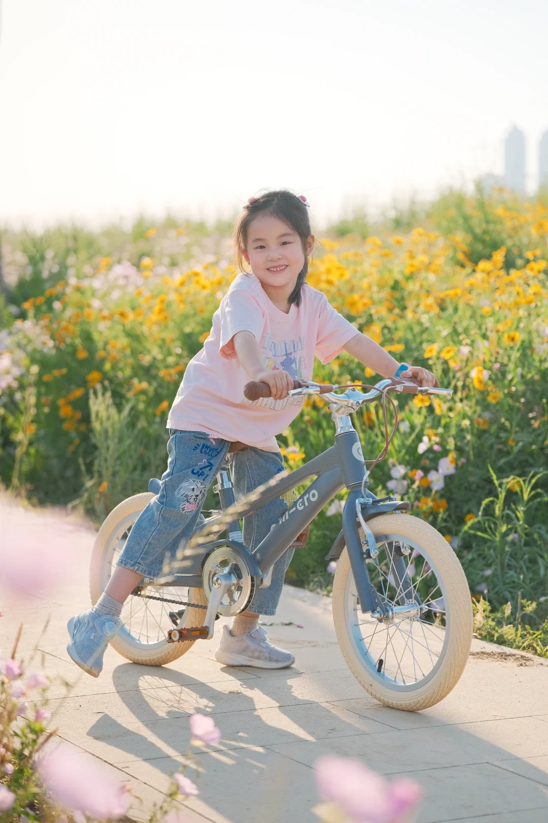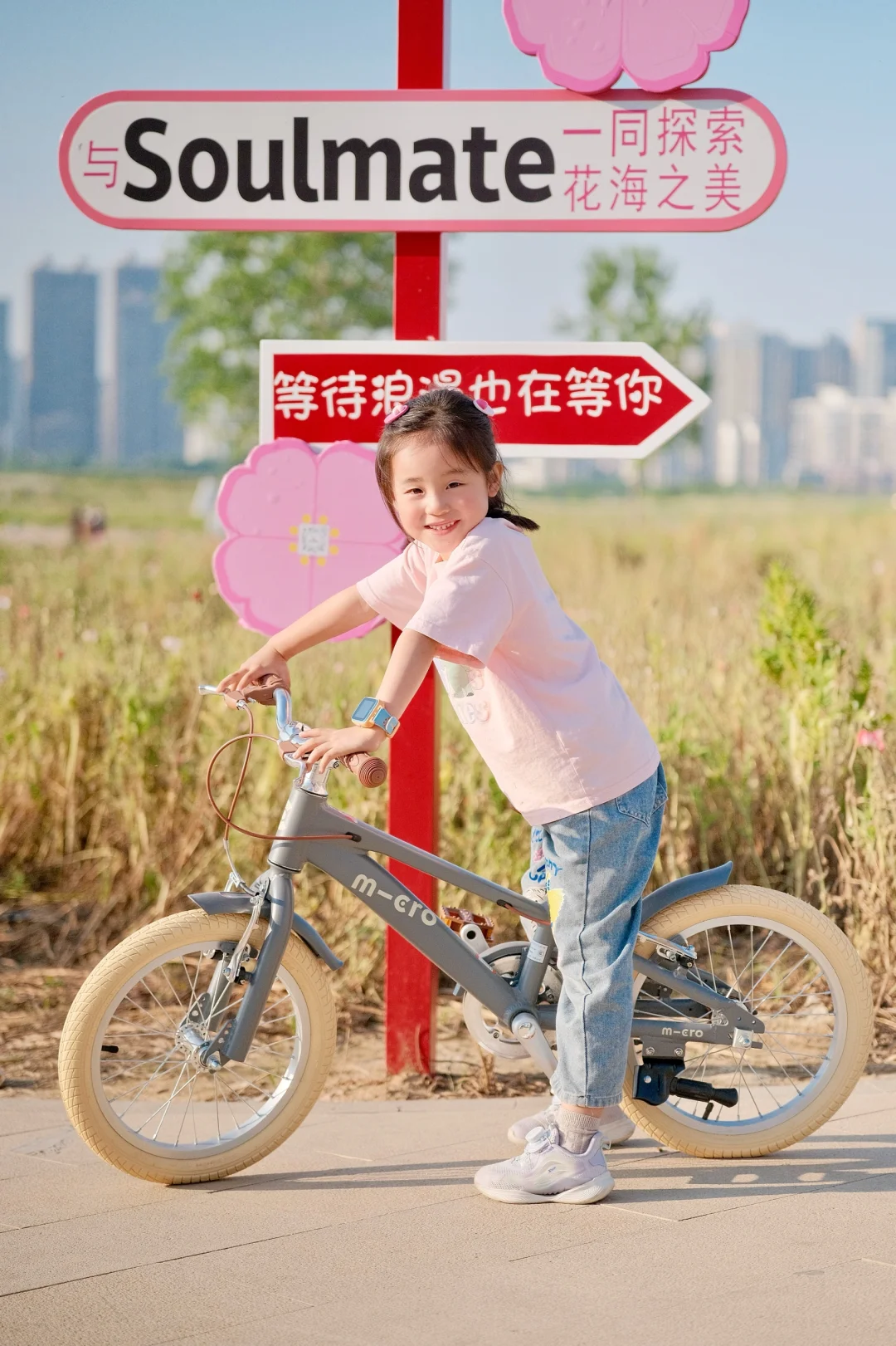 初夏的武汉真的绝美 天气超舒服! 宝贝最近迷上了骑行 当然得带她来打卡绝美花海呢 汉江湾花田花海[搜索高亮]开满了红的粉的黄的花花 5🈷️的月见草花还开的正艳 - 宝贝在花海中骑上了欧式复古风的自行车 奶油色系超温柔,和花海绝配 车子自带的辅助轮,不怕宝贝不会我们骑行了一个月已经学会了 直接给它卸了小轮子🛞 一体成型的马鞍座骑很久小屁屁都不痛啦 - 在3万方的花海中,享受风和自由 周末带娃骑行的快乐🎉谁懂呀