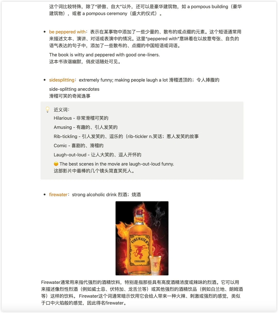 3. 喝得喉咙冒火 sear our throats