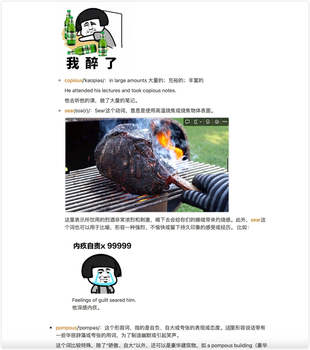 sear表示所饮用的烈酒非常浓烈和刺激,喝下去会给你们的喉咙带来灼烧感。此外,sear这个词也可以用于比喻,形容一种强烈、不愉快或留下持久印象的感受。