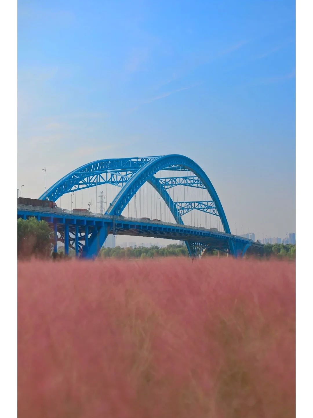 武汉秋日限定浪漫❗️蒂芙尼蓝桥下的粉黛花