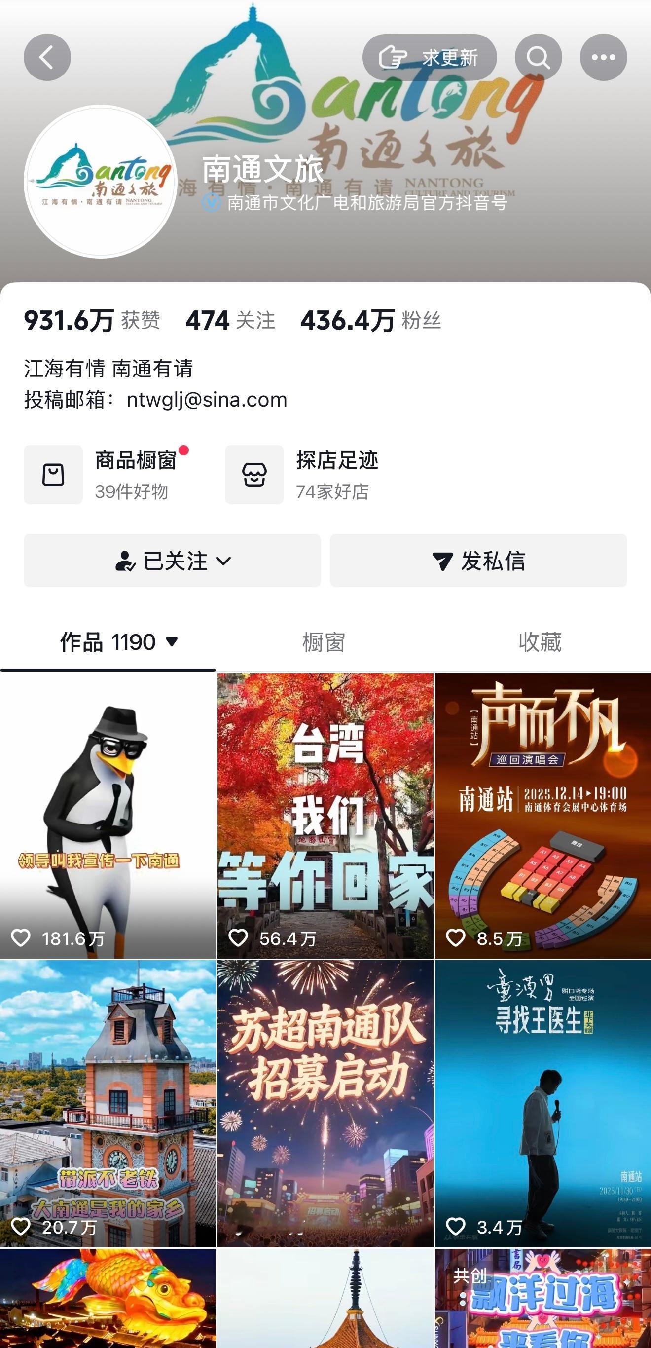 南通文旅账号粉丝已经涨到了400万! 牛!