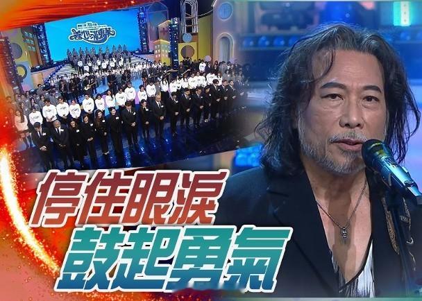 【On.cc】善心滿東華︱開場全場默哀1分鐘 夏韶聲唱《永不放棄》為災民打氣無綫節目《善心滿東華》今晚(29日)於將軍澳電視城舉行,為哀悼大埔宏福苑五級火災民,節目甫開始即全場肅立默哀1分鐘。默哀儀式結束後由「搖滾教父」夏韶聲帶領單立文、袁偉豪、戴祖儀等齊齊夾Band獻唱《永不放棄》、《童年時》等歌曲為災民打氣,夏韶聲獻唱前說:「11月26日全世界都睇到香港一個咁悲痛嘅大災難,一瞬間冇咗個家、冇咗啲親人,呢個悲痛欲絕,聞者流淚,見者傷心。我同團隊想同佢哋(災民)講,呢樣嘢,停住眼淚,鼓起勇氣。」身為大埔居民的張德蘭獻唱《相識也是緣份》,她表示:「我住喺大埔,返屋企見到火喺度燒緊,覺得好難過、好心痛,希望大家伸出慈善之手,幫助有需要的人士。」全場默哀1分鐘。夏韶聲為災民打氣。一齊夾Band!單立文(左)同夏韶聲彈結他。神情凝重。羅毓儀神情哀傷。張德蘭都係大埔居民。