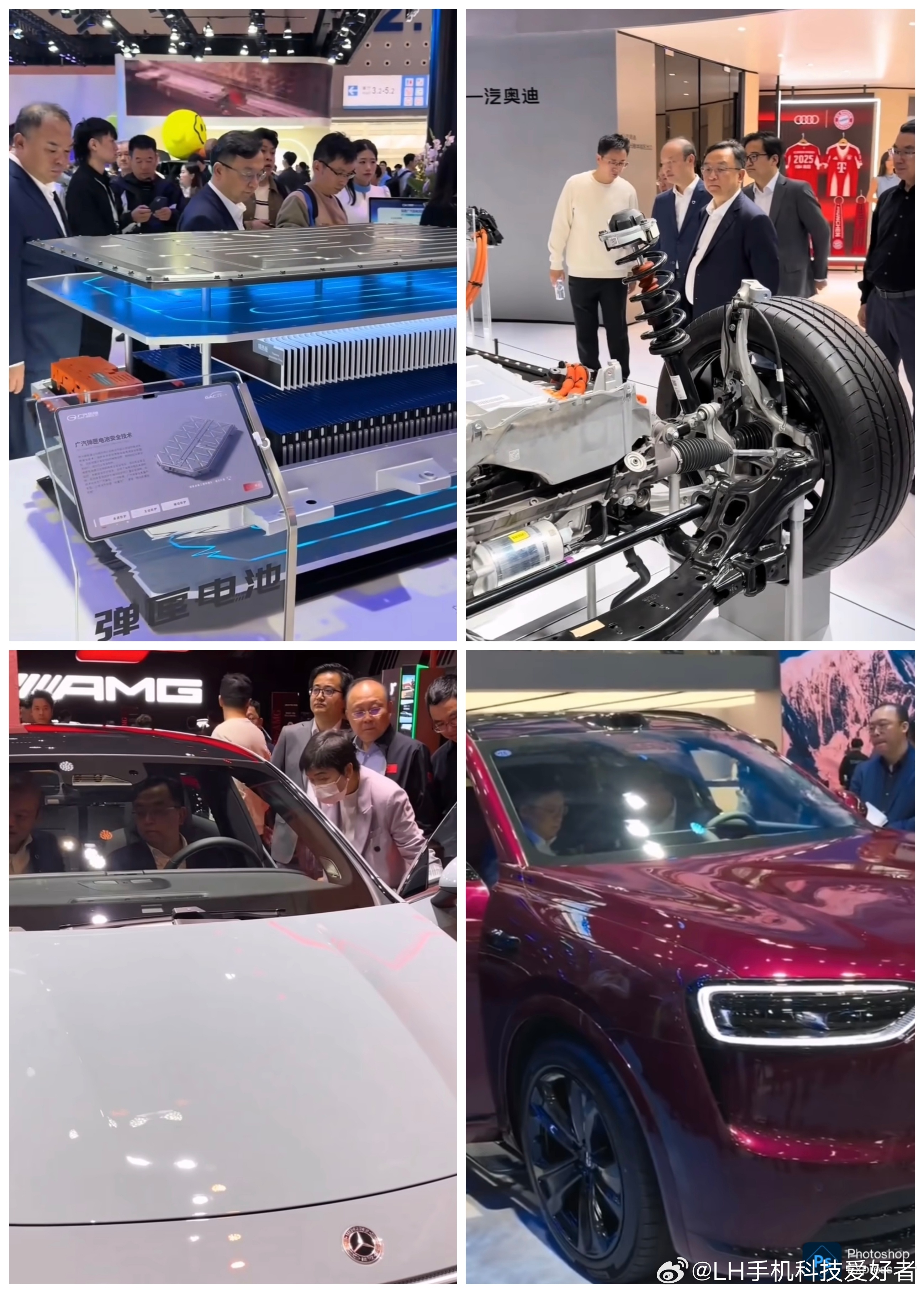 王传福在2025广州车展现场参观了其他品牌,看了奥迪、奔驰、问界,还参观了广汽的弹匣电池。他身边还有中国工程院院士廉玉波等一众高管,看友商的产品也可以吸取一些经验。