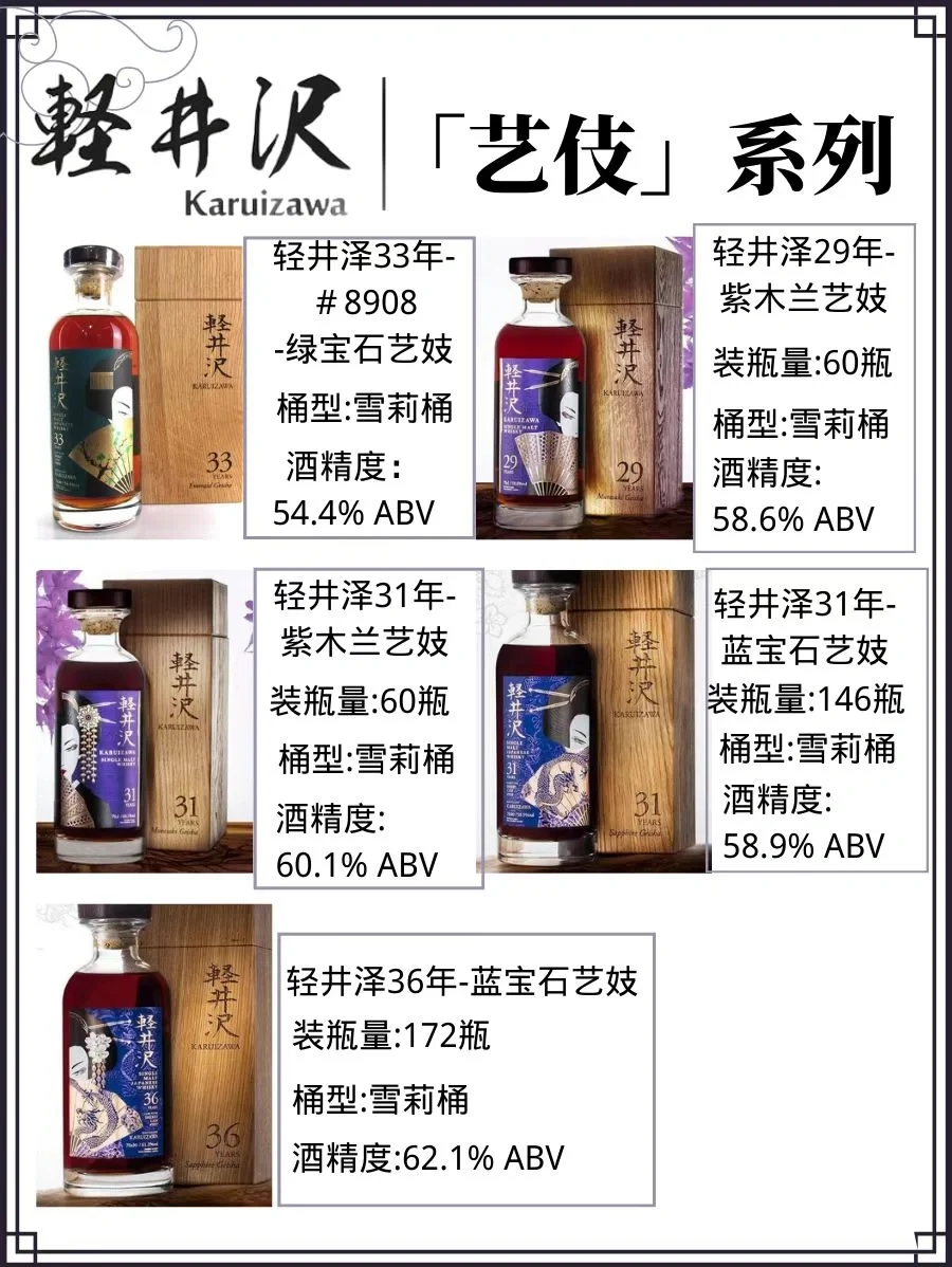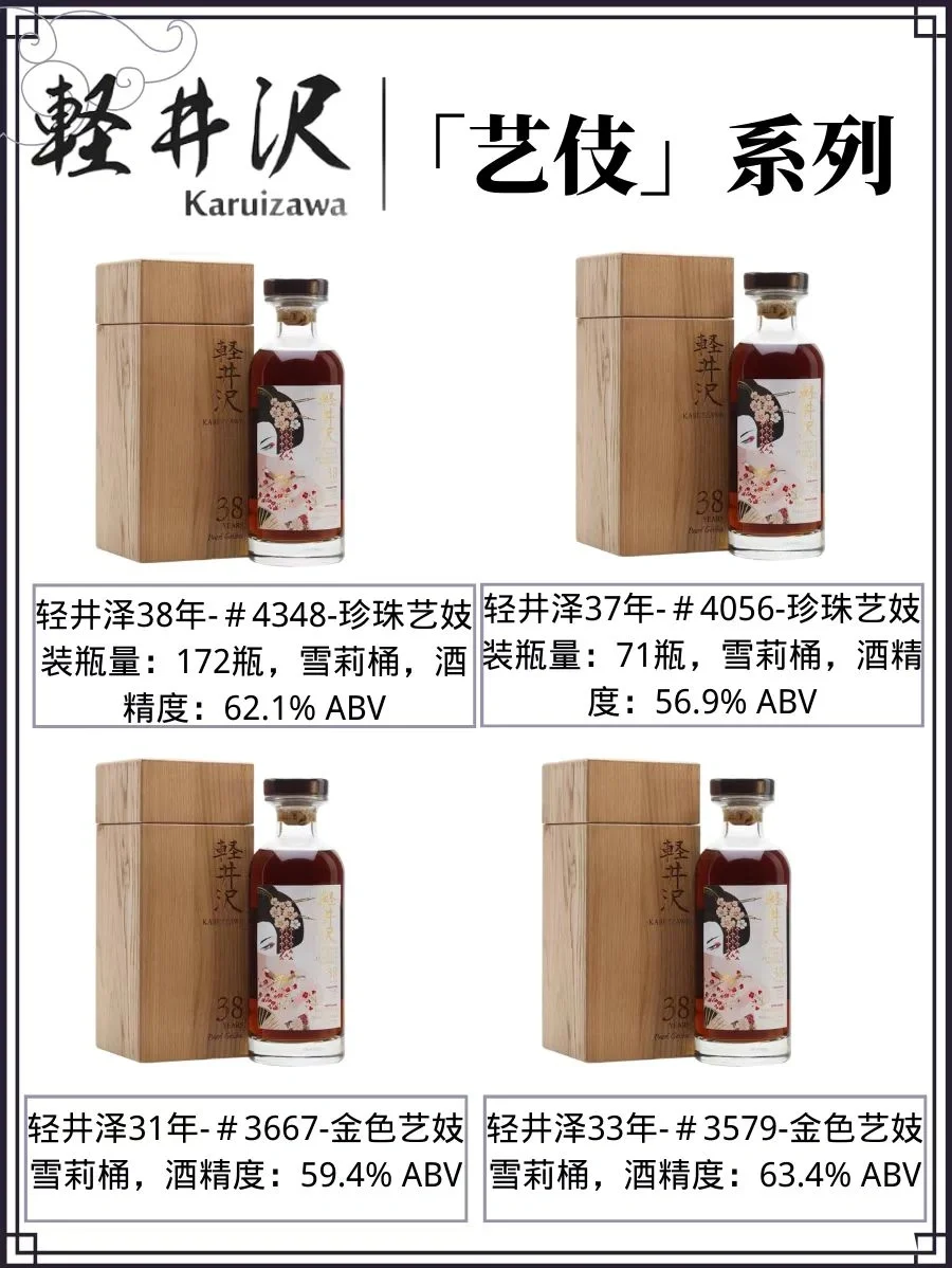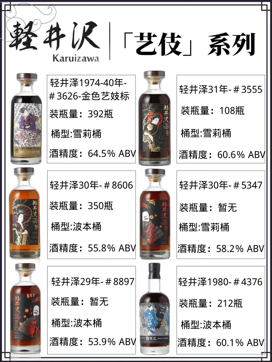 🌾近几年来,轻井泽艺妓标系列在拍卖会上常常以高价售出,成为威士忌收藏界的抢手酒款。