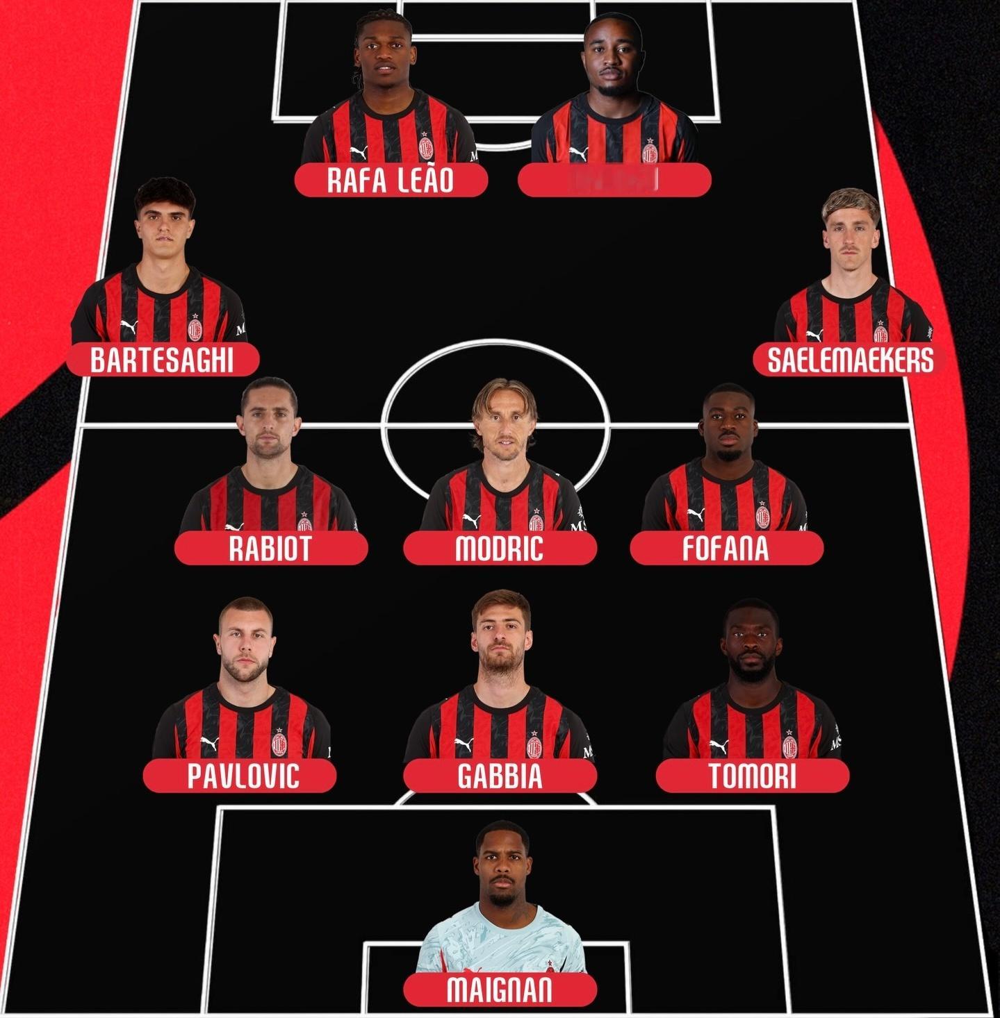 【首发阵容】2025-26赛季意甲联赛第13轮-🔴⚫️米兰主场对阵拉齐奥队(352);队长:迈尼昂🇫🇷.拉斐尔·莱奥🇵🇹、恩昆库🇫🇷组成双前锋;巴特萨吉🇮🇹、拉比奥特🇫🇷、莫德里奇🇭🇷、福法纳🇫🇷、萨勒马科尔斯🇧🇪组成五中场;帕夫洛维奇🇷🇸+加比亚🇮🇹+托莫里🏴的三中卫组合;Forza Milan!👊🏻sempremilan