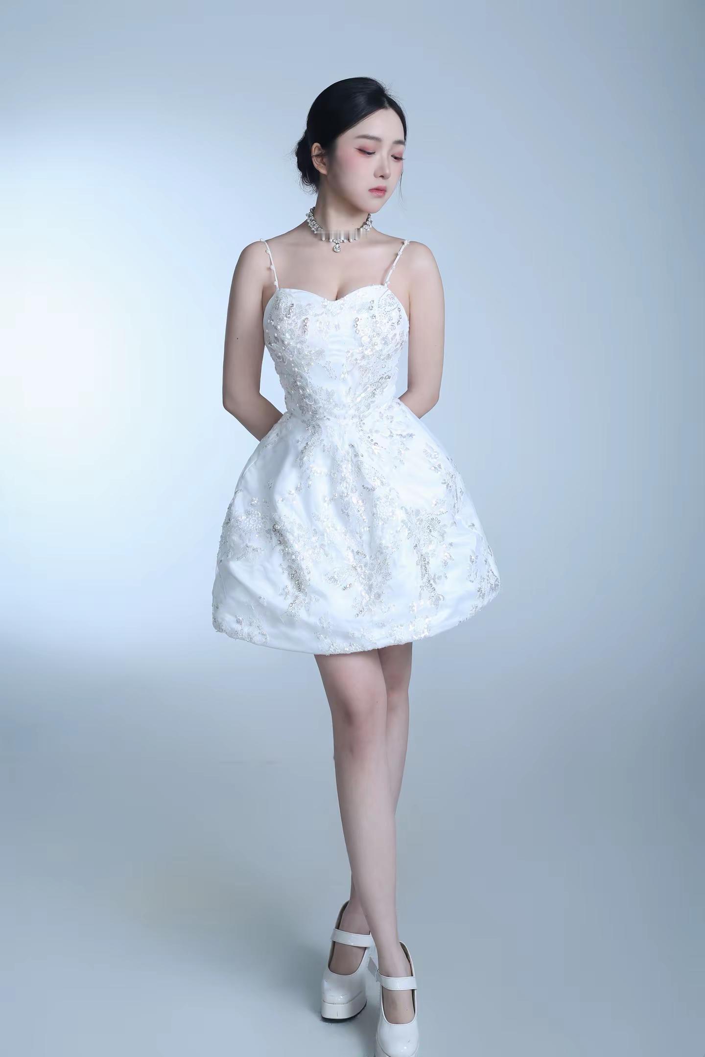 谁说只有S型身材才能驾驭深V? 讲真,那条带荷叶边的白色针织裙一上身...