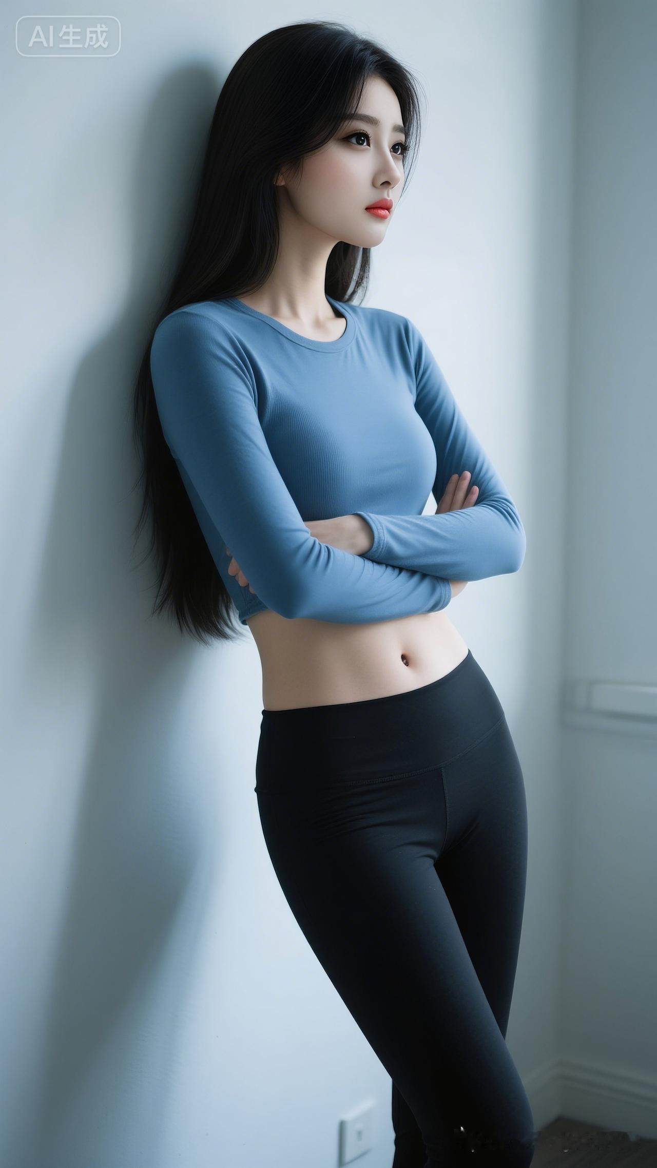 优雅蓝调,性感黑裤,都市女郎的时尚穿搭