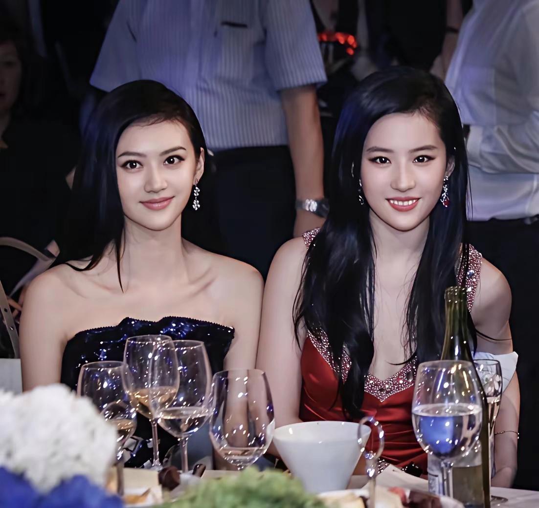 双姝同框:秀发垂肩的刘亦菲眉若远黛,睛似点漆,唇若激丹,肌肤胜雪,只是这笑容略显僵硬,感觉牙齿被美白过;一旁的景甜眉似新月,俊目流眄,修项秀颈,嫣然若曦,不论是颜值还是衣着都比神仙姐姐有过之而无不及呀,你看呢?