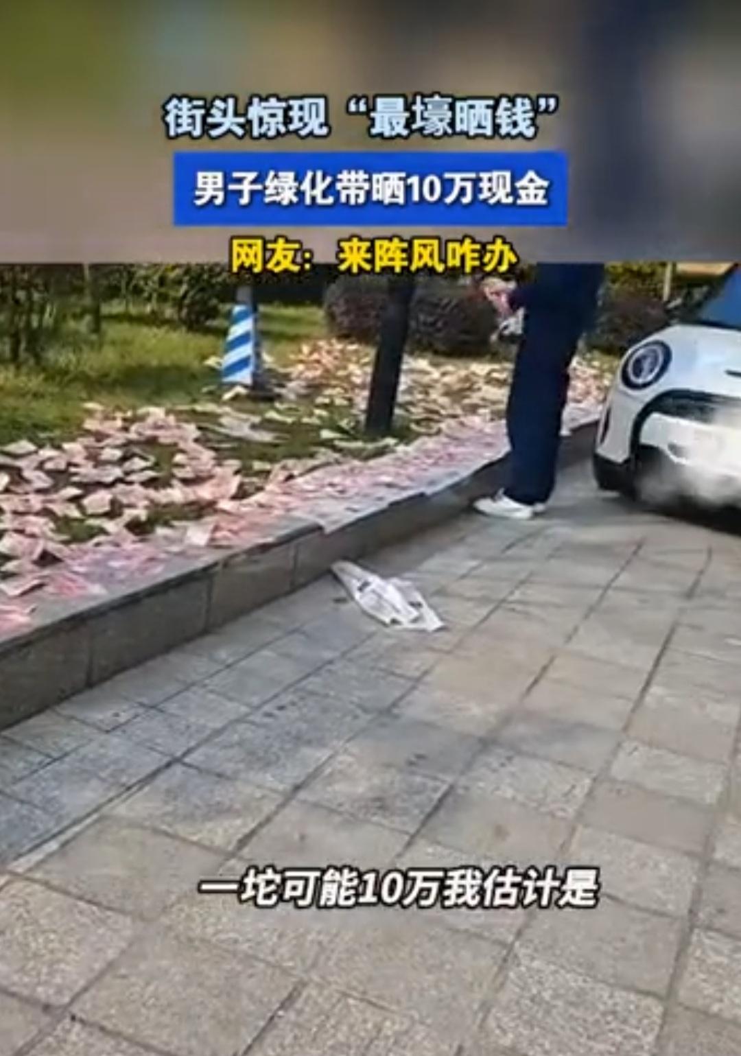 别人晒富都是嘴上说说, 这是真晒啊! 成都这男子因现金被打湿, 在绿化带晾晒10万现金的行为, 虽事出有因却暗藏风险。 “财不外露”的古训并非空谈, 露天晾晒容易被风刮或者失窃, 在公共区域晾晒还可能引发围观拥堵。 网友调侃“靠城市治安兜底” 虽然是在开玩笑, 但更稳妥的做法还是送银行处理, 既安全又合规, 这样是方便省事儿但太冒险了。