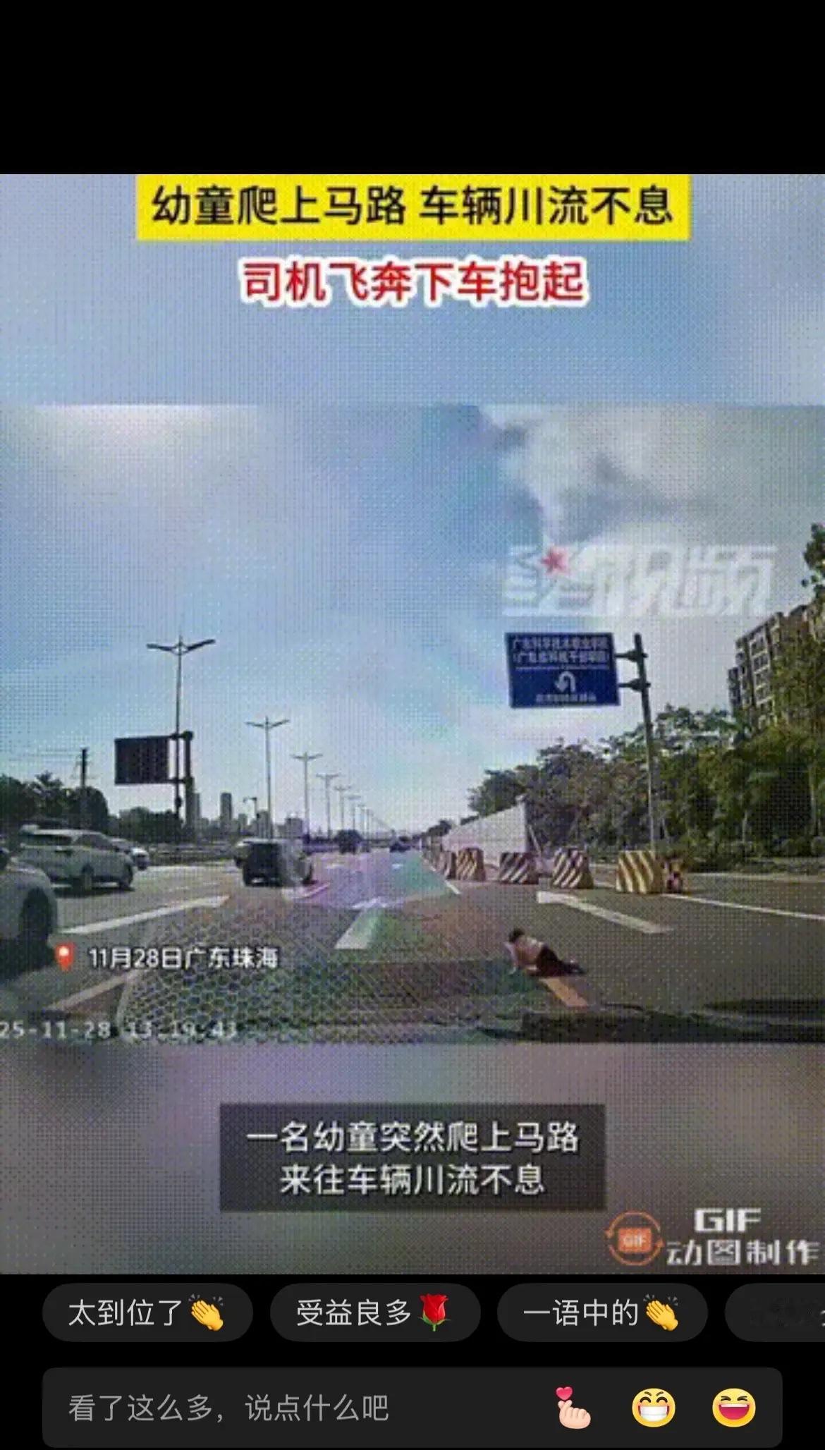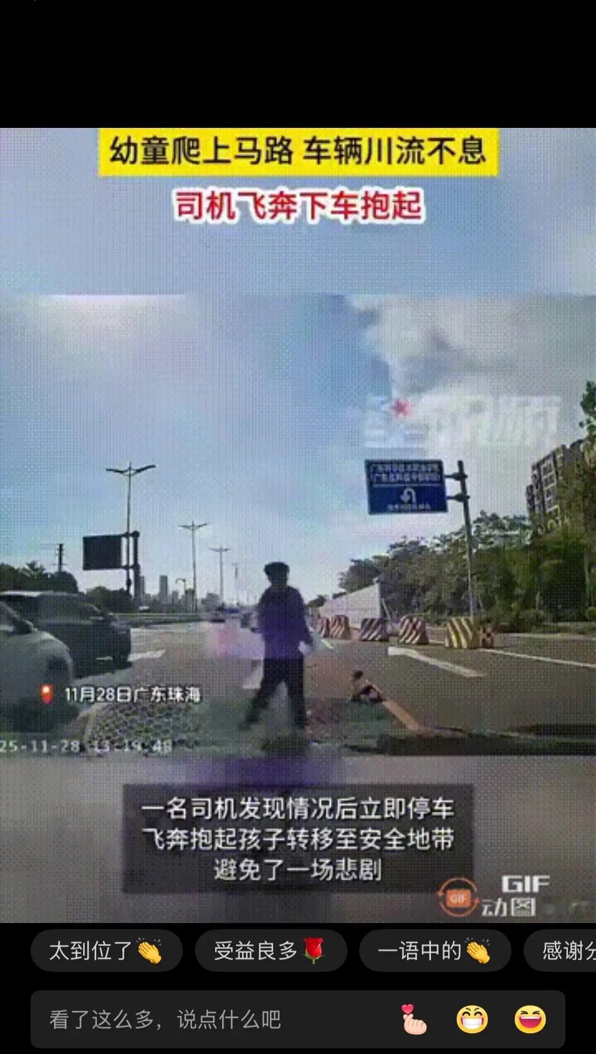 广东珠海一名男子开车回家时,突然从路边爬出一个宝宝,这个宝宝还不会走路,只能爬着慢慢移动,眼看宝宝就要爬到川流不息的路中央,于是男子迅速下车把宝宝抱起,并将宝宝转移到安全的位置。 刷到这个视频的时候,我心脏都跟着揪紧了!珠海那段路我有印象,早晚高峰车流量特别大,车速普遍不低,宝宝那么小,身子还没路边的护栏高,要是再往前爬个两米,后果真的不敢想。男子的反应堪称教科书级别的果断,视频里能看到,他的车刚驶过一个公交站,突然猛地踩下刹车,车门几乎是同时打开,他快步冲过去,弯腰就把宝宝抱了起来,整个过程连三秒钟都不到。 后来看媒体采访,才知道这位男子姓林,是附近公司的职员,当天正好下班回家。他说当时注意力都在前方路况,眼角余光瞥见路边草丛里有个小小的身影在动,一开始还以为是小动物,仔细一看才发现是个宝宝,身上穿着浅色的连体衣,手里还攥着一个小玩具,正一步步往马路中间爬。“当时脑子一片空白,就想着不能让车碰到孩子。”林先生说,他把宝宝抱到路边的安全岛后,才发现孩子身上没有任何联系方式,脸上还沾着泥土,吓得有些发抖,只是一个劲地盯着他看。 周围路过的车主也纷纷停下车,有人拿出纸巾给宝宝擦脸,有人帮忙联系附近的社区工作人员和民警。大概二十分钟后,一对年轻夫妇慌慌张张地跑了过来,看到宝宝安然无恙,女子当场就哭了出来,紧紧抱着宝宝不肯松手。原来这对夫妇是宝宝的父母,当天下午在家收拾房间,想着宝宝在围栏里玩很安全,就没一直盯着,没想到宝宝自己爬开了围栏,从家里的后门溜了出去,顺着路边的草丛一直往马路爬。 “我们发现孩子不见的时候,魂都吓没了,小区里找了一圈都没找到,正准备报警,就接到了社区的电话。”宝宝的父亲红着眼眶说,他们家住在离马路不到一百米的小区,后门正好对着那段路,平时很少有人从那边走,没想到宝宝会自己爬过去。他当场给林先生鞠了三个躬,拿出钱想表示感谢,被林先生婉拒了:“谁碰到这种事都会伸手帮一把,没必要这么客气,以后看好孩子就行。” 这件事很快就在网上传开了,网友们纷纷为林先生的果断点赞,有人说他反应快,救了宝宝一命;也有人说,现在很多人怕惹麻烦,遇到这种事会犹豫,林先生的做法真的很正能量。但也有不少网友提出了质疑,觉得宝宝的父母太不负责任,这么小的孩子怎么能让他独自待着,万一出了意外,一辈子都追悔莫及。 其实类似的案例并不是个例,根据中国疾控中心发布的数据,每年有近十万名儿童发生意外伤亡,其中因监护疏忽导致的交通意外、走失等占比超过三成。很多家长总觉得孩子在自己眼皮底下不会出事,却忽略了宝宝的好奇心强,行动力又快,稍微不注意就可能发生危险。就像这次的事件,宝宝才刚学会爬,根本没有危险意识,要是林先生当时反应慢一点,或者没有及时发现,后果不堪设想。 社区工作人员也提醒,家长带娃一定要时刻保持警惕,尤其是低龄儿童,不能让他们离开自己的视线范围。如果家里有小孩,门窗一定要关好,围栏要安装牢固,避免孩子自行外出。同时,建议给低龄儿童佩戴带有联系方式的手环或衣物,万一发生走失或意外,能让其他人快速联系到家长。 林先生的行为之所以让人感动,不仅是因为他救了一个孩子,更因为他在关键时刻挺身而出的勇气和善意。在这个有时候会让人觉得“人心冷漠”的社会,这样的举动就像一束光,温暖了很多人的心。但更值得我们反思的是,家长的监护责任不能有丝毫松懈,孩子的安全容不得半点侥幸,一次疏忽,可能就会造成无法挽回的损失。 希望所有家长都能从这件事里吸取教训,用心呵护孩子的成长,也希望更多人能像林先生一样,在他人遇到困难时,愿意伸出援手。每一份善意都能传递温暖,每一次警惕都能守护安全。 各位读者你们怎么看?欢迎在评论区讨论。