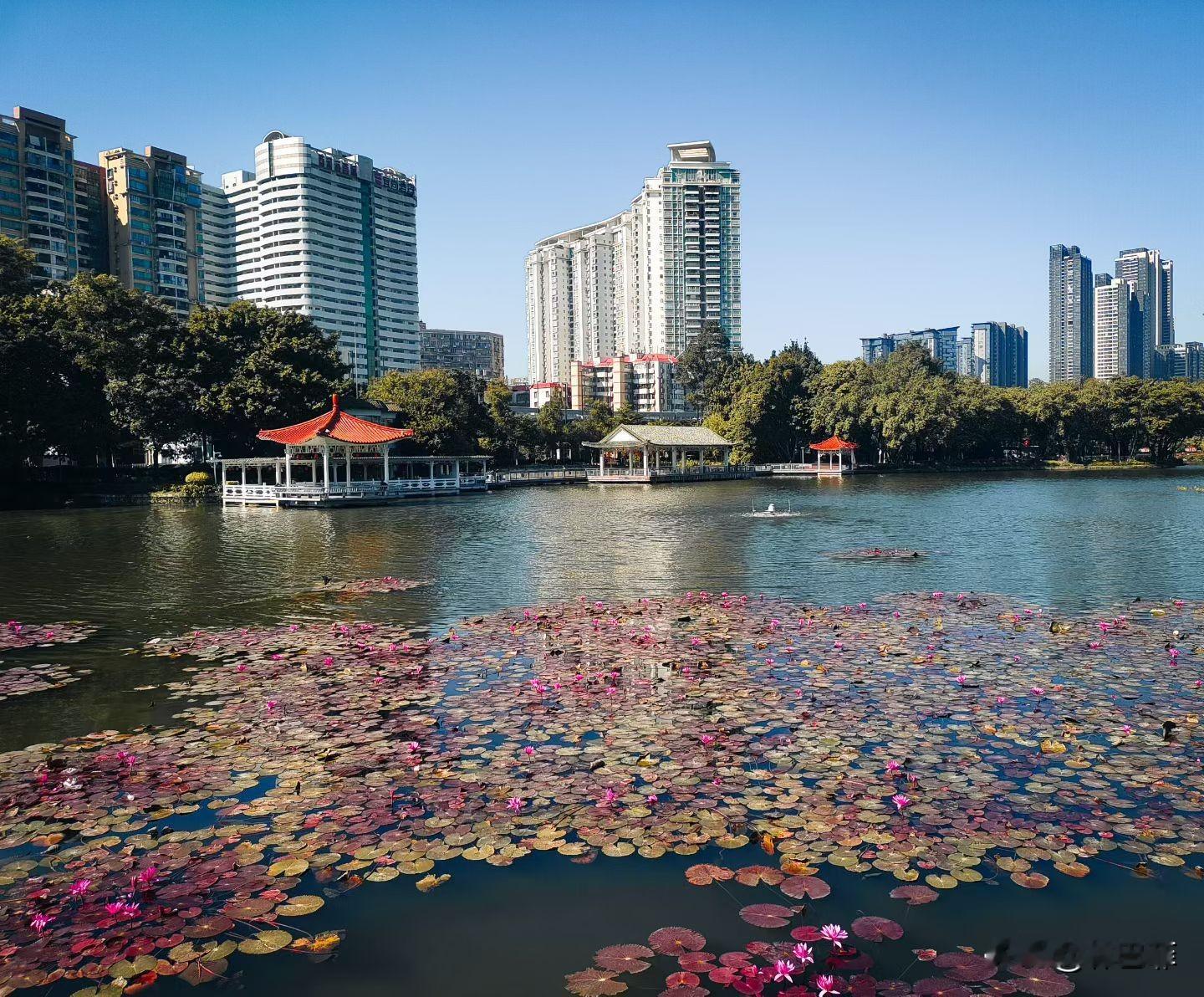 今天荔湾公园好多人呀,可能是天气好晴又暖外加上周末假期的原故吧。 湖里不少人坐着游船游湖, 湖里的莲花艳丽艳丽,开得好美! 广州 荔湾风景