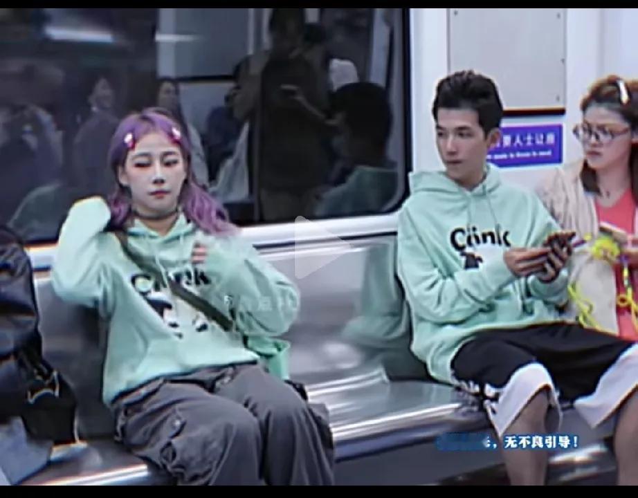 坐地铁,年轻女孩跟妈妈辈的人撞衫。 小伙子带女朋友坐地铁,跟同排座位的女孩撞衫。