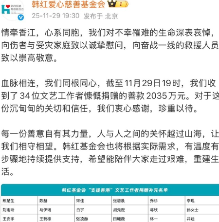 张凌赫携手韩红基金会向香港捐款,一切平安