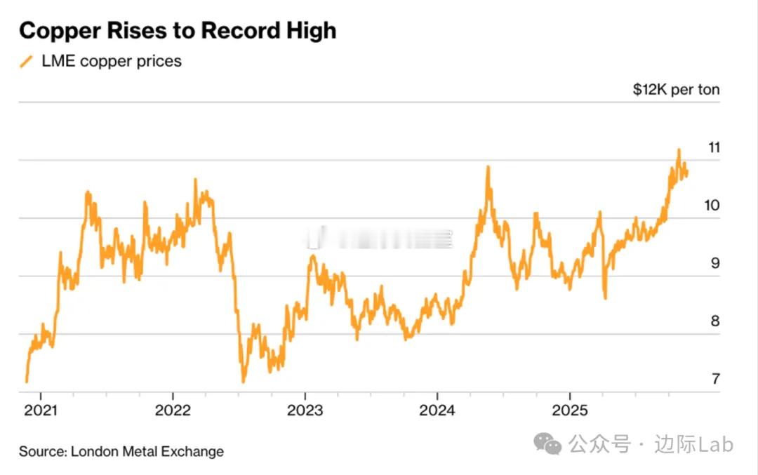 国际铜价受全球矿端扰动影响飙升至历史高位,叠加中国房地产部门的结构性走弱,导致中国在传统的工业旺季出现罕见的需求断层。下游加工企业因高成本和订单匮乏大幅降低负荷,占据市场半壁江山的铜杆线行业10月开工率降至61%,创下近十年同期新低,迫使冶炼厂转而依赖出口以消化过剩产能。来源:Bloomberg
