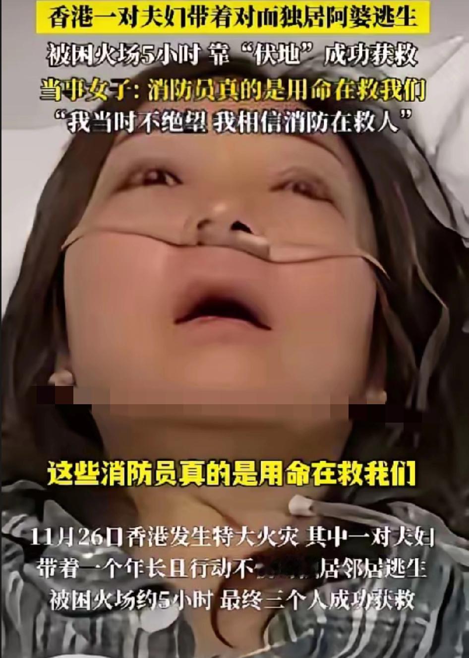 这才是邻里情最该有的样子! 香港大火里,小夫妻都逃到楼下了,看见独居阿婆屋灯还亮着,居然冒着生命危险折回去救人! 浓烟裹着焦味呛得人睁不开眼,走廊灯炸得火星四溅,女人一把护住阿婆摁倒在地:“伏地!烟重别抬头!” 这一躲就是5小时,后背衣服被烤得发硬,还死死攥着阿婆的手安抚。 独居老人火灾自救难,这对夫妻不仅有勇气,更懂科学避险的常识,既救了人又保护了自己。 现在很多人住对门都不相识,他们却用行动证明,远亲真的不如近邻。 关键时刻的挺身而出,比任何寒暄都珍贵。你身边有这样靠谱的邻居吗?如果遇到危险,你会愿意为邻居搭把手吗?香港夺命大火 香港中环火灾 香港大楼火灾 香港住宅起火 香港五级火灾 香港起火事故 香港大埔屋火灾