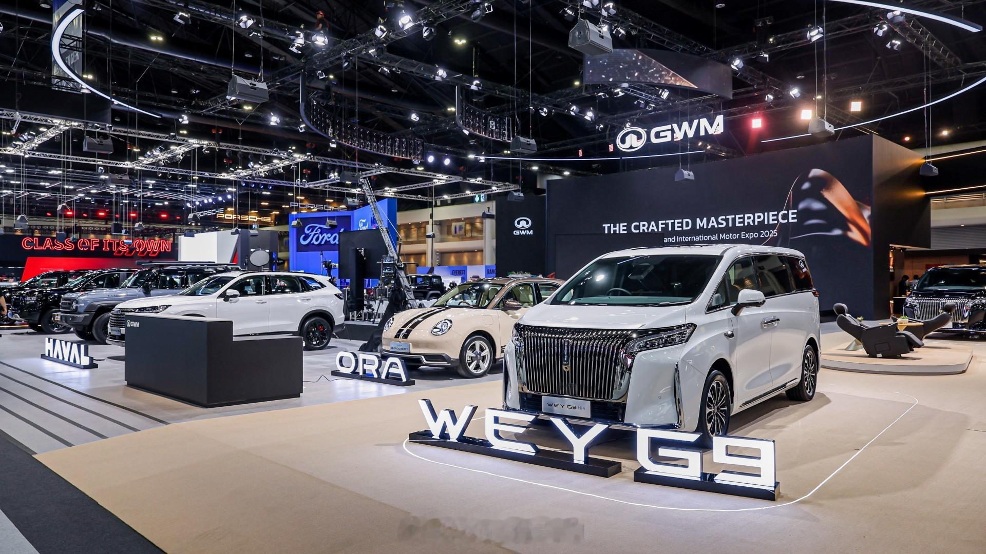 右舵高山亮相泰国国际车展了,准确说是直接上市,售价2,349,000泰铢,约合人民币51.8万元!注意哈,这个车虽然叫GWM WEY G9,但目测应该是最短的高山7,也就是国内售价28.58万那款。从官方信息来看,Hi4性能版智能四驱电混、二排零重力座椅之类配置也没啥差别。很多朋友都知道,东南亚的车价一直挺高。泰国汽车进口关税前几年降过,但现在仍然在50%以上。不过话说回来,另一位国产新能源MPV腾势D9,纯电版在泰国的售价是1,999,900-2,699,900泰铢,约合人民币44.3-59.8万元,而国内售价是31.98-46.98万元。这么一比,溢价似乎比高山少一些,这是为啥呢?魏牌全新高山 国产车出海 MPV