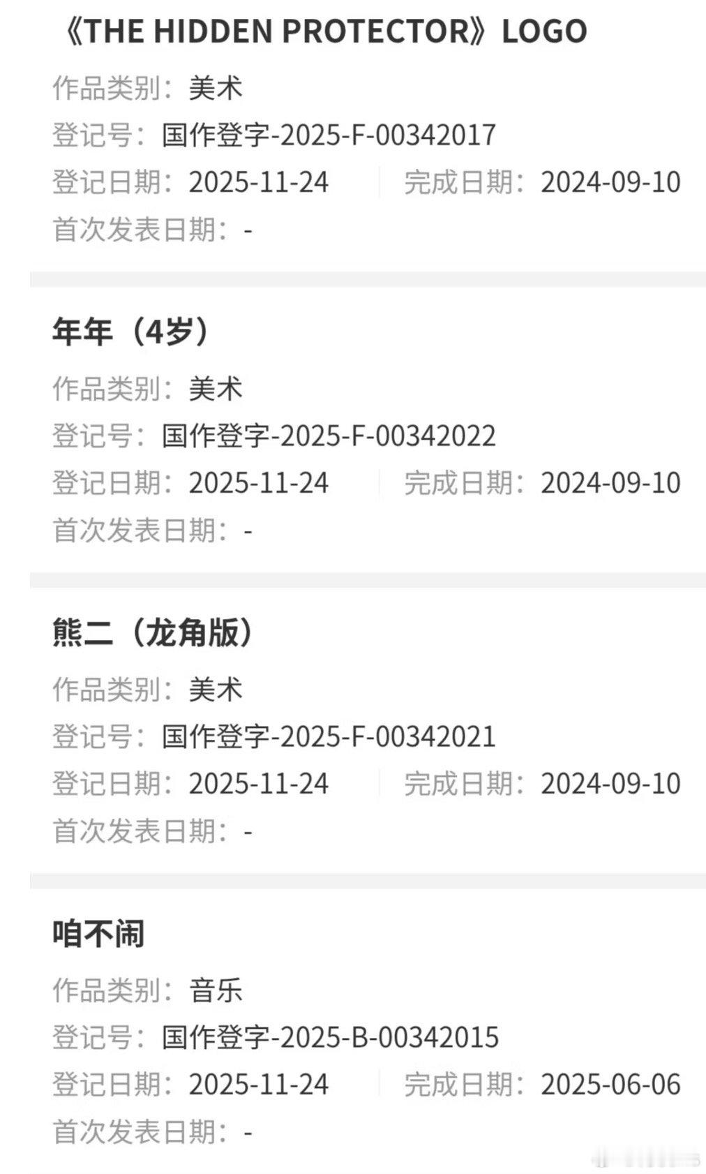 电影《熊出没:年年有熊》将于2026年大年初一上映,最近关于这部电影新增了十几个著作权电影英文片名为《THE HIDDEN PROTECTOR》直译为隐藏的守护者其他注册为年年(4岁)、熊二(龙角版)、《熊出没•年年有熊》logo(中文版)、熊二(练功服)、光头强(练功服)、年年婴儿版、岁岁婴儿版、老银、岁岁、男侍卫、年年6岁、女侍卫、老金关于电影的剧情和走向可以大致猜一下