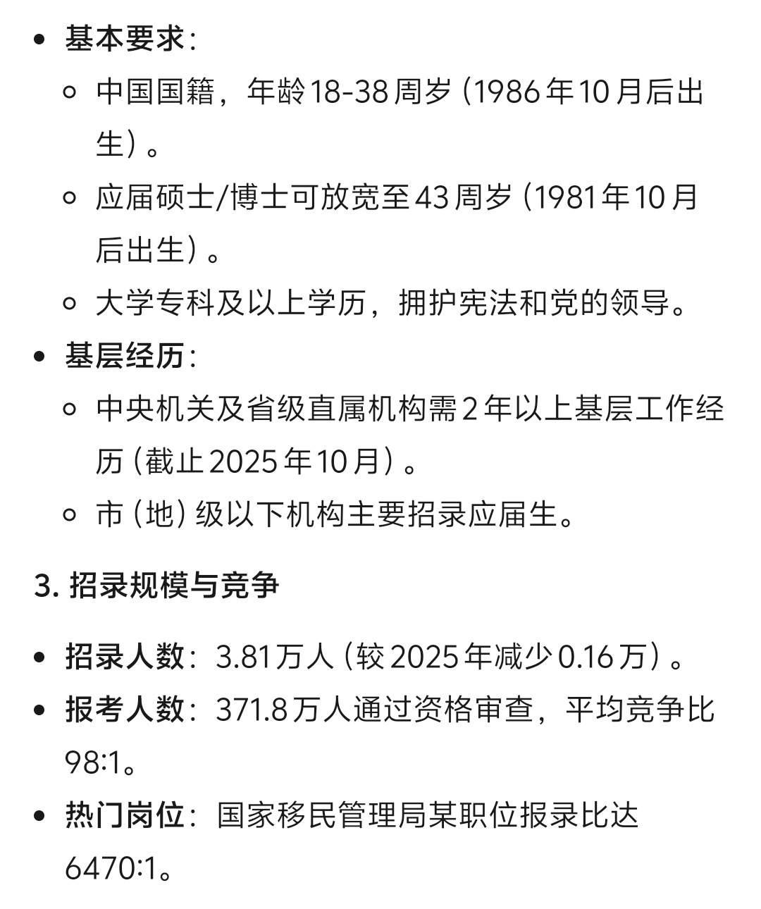 2026年国考今日开考国考 招录人数:3.81万人(较2025年减少0.16万)报考人数:371.8万人通过资格审查平均竞争比98:1,基本上都是百里挑一了国家移民管理局某职位报录最高!6470:1加油✊