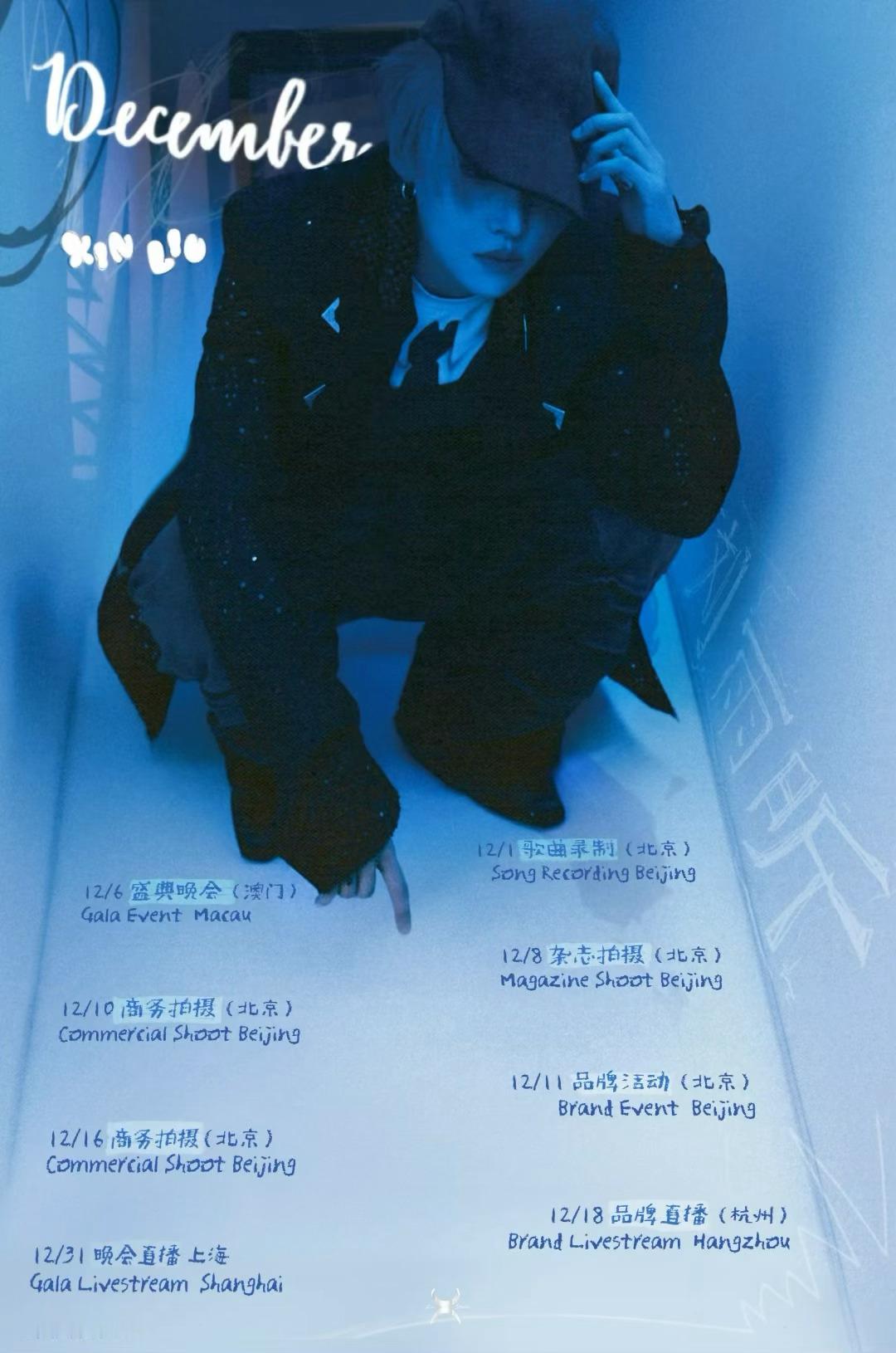 刘雨昕12月行程图来了,晚会 杂志 商务全都有!