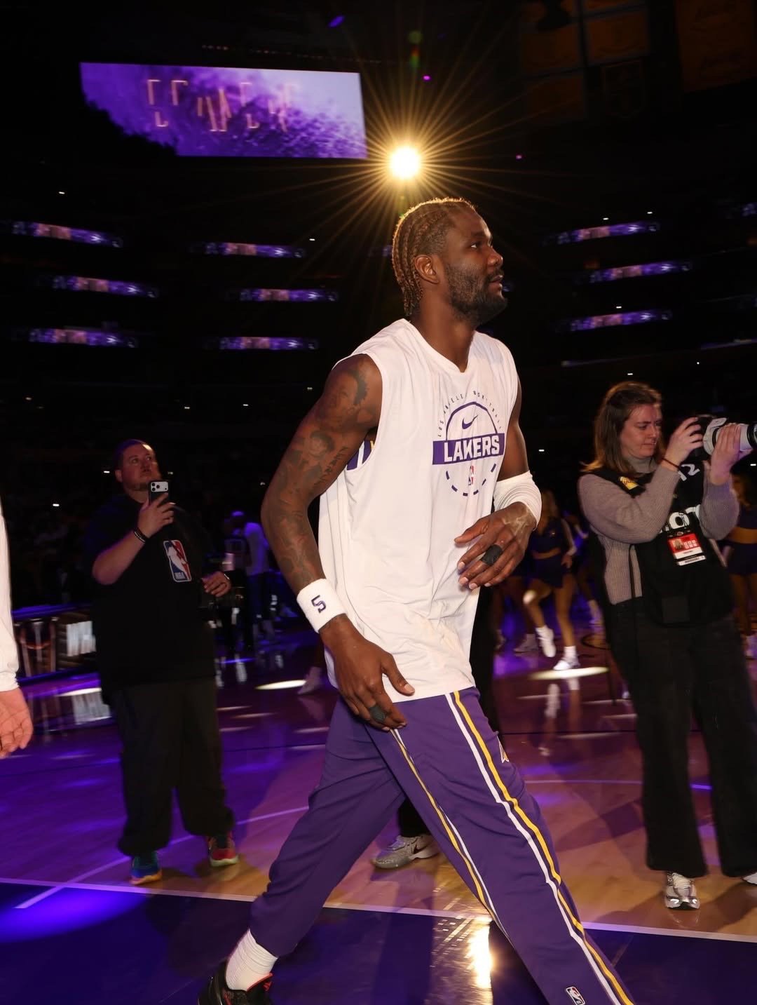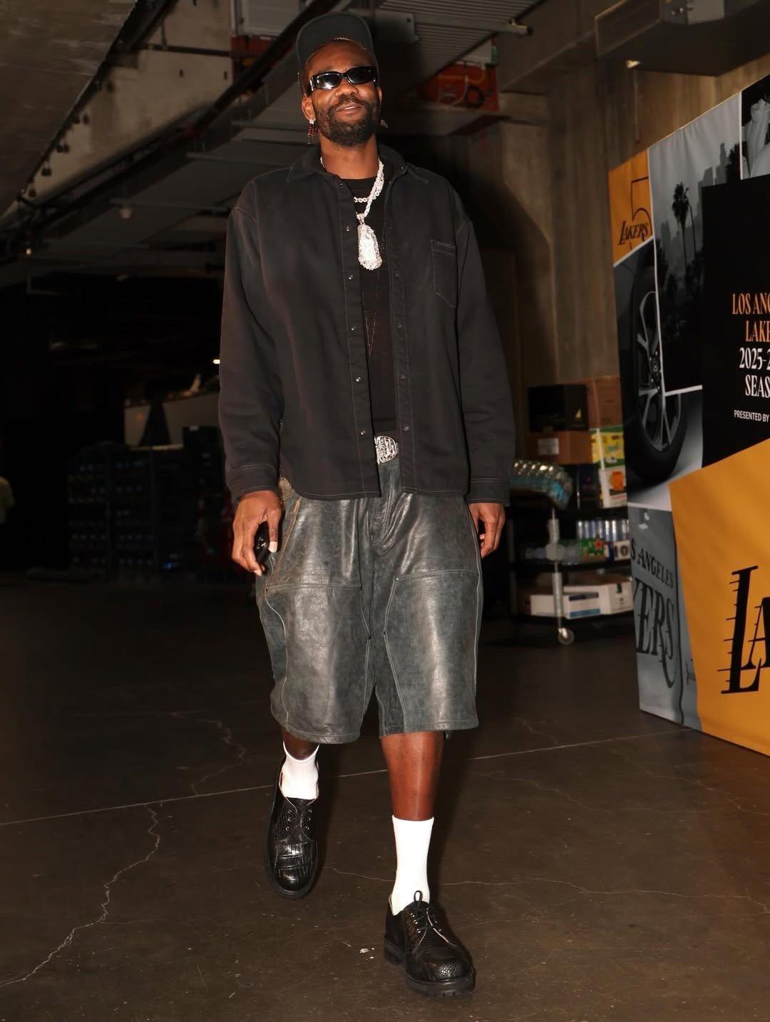 昨日詹姆斯入场穿搭。洛杉矶湖人洛城德比