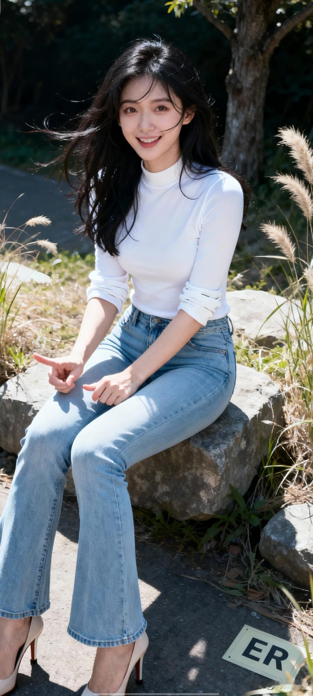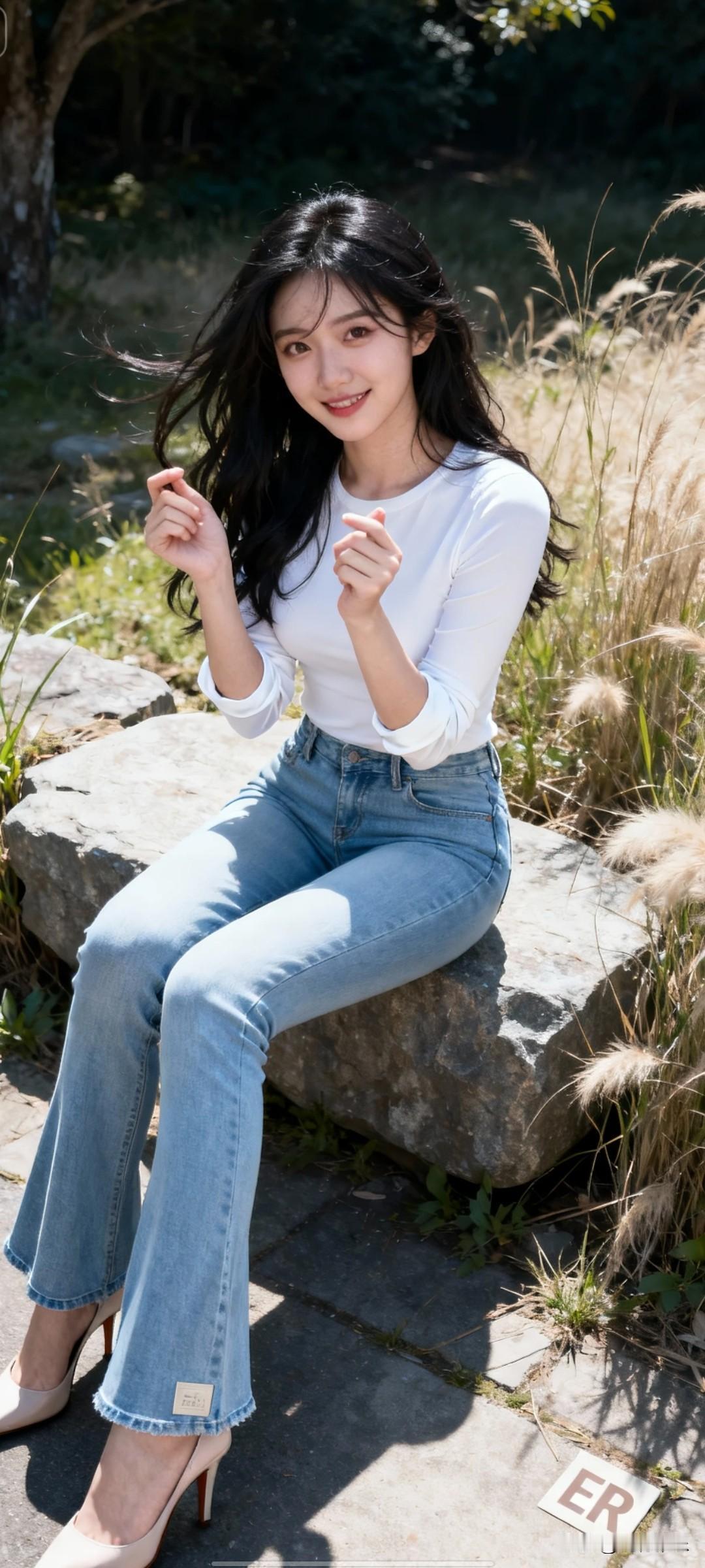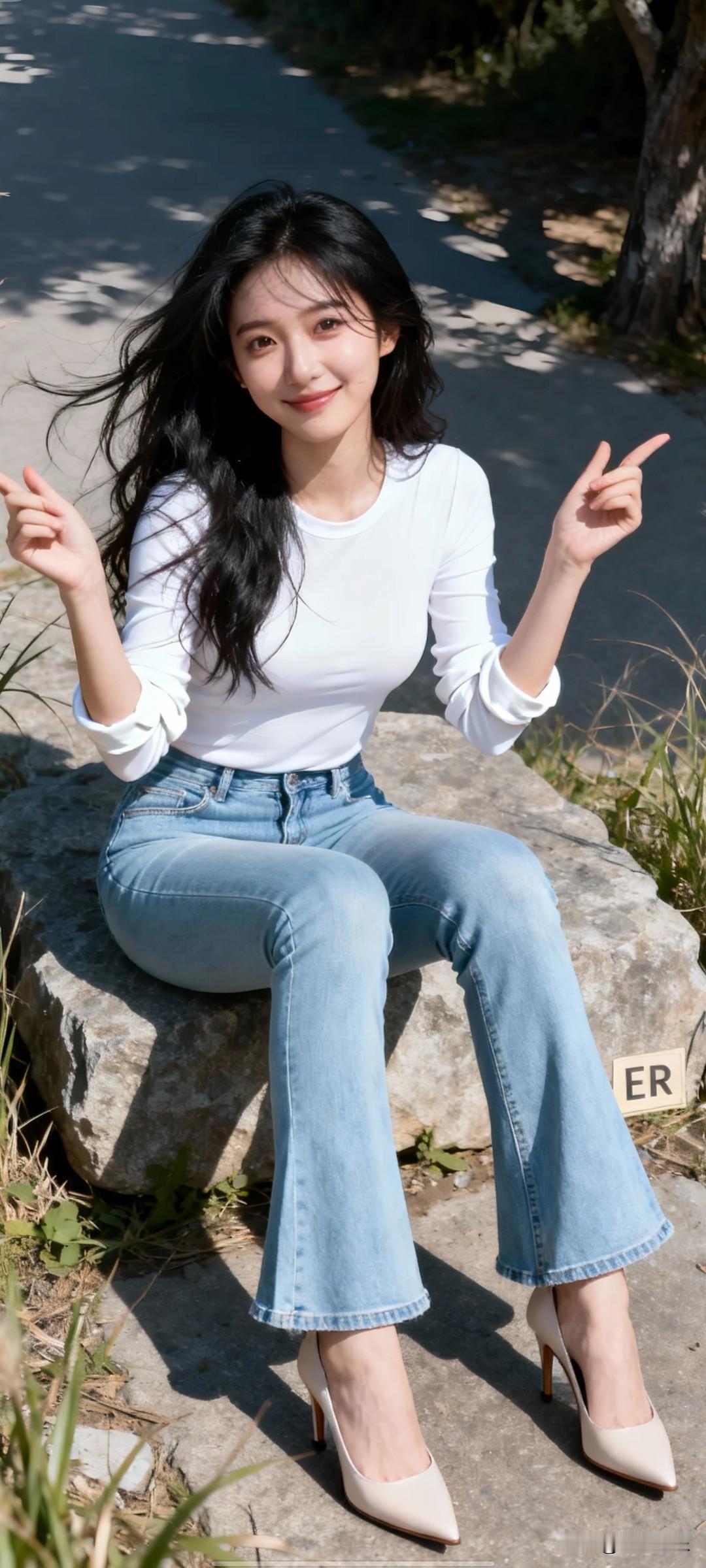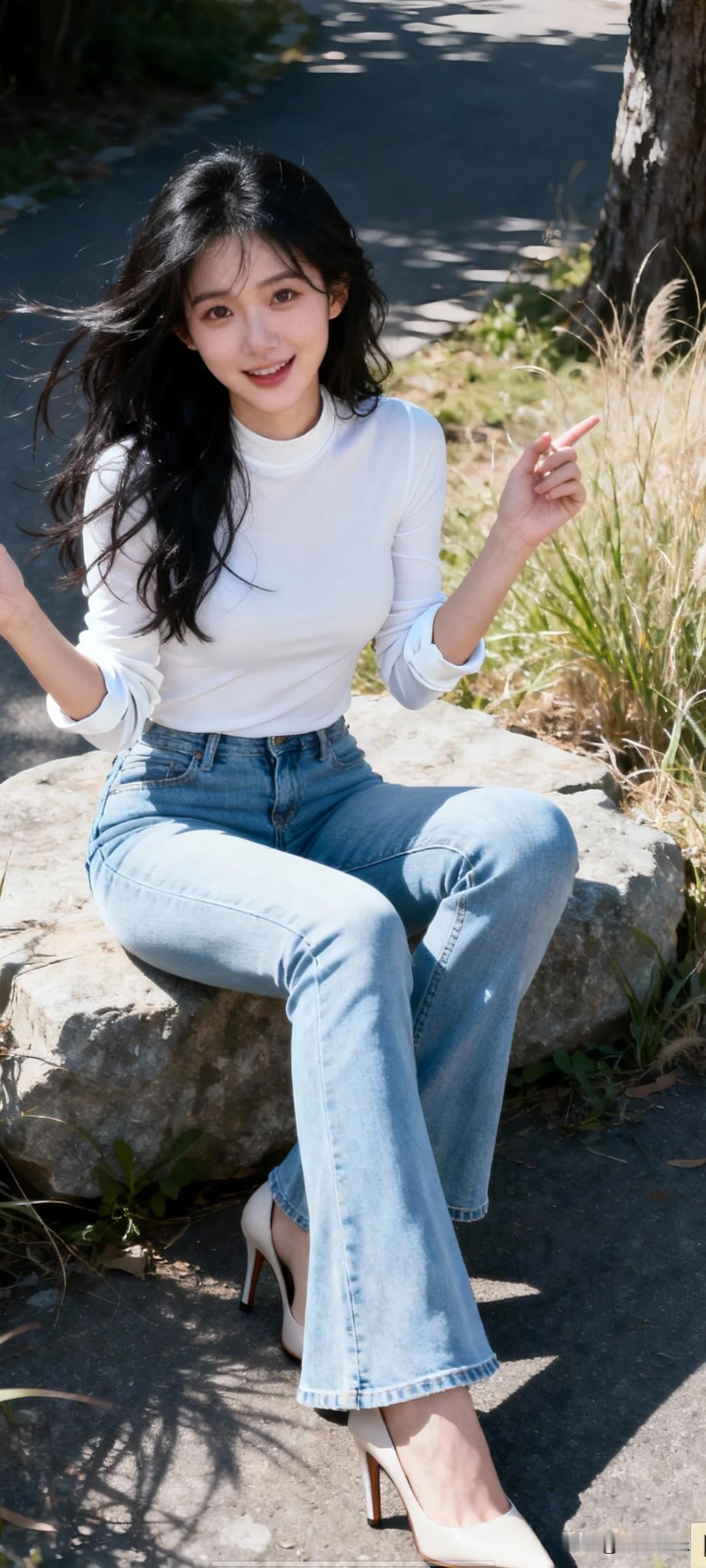 谁家女神跑出来了?黄吊带工装裤,蹲在秋景里笑酥了