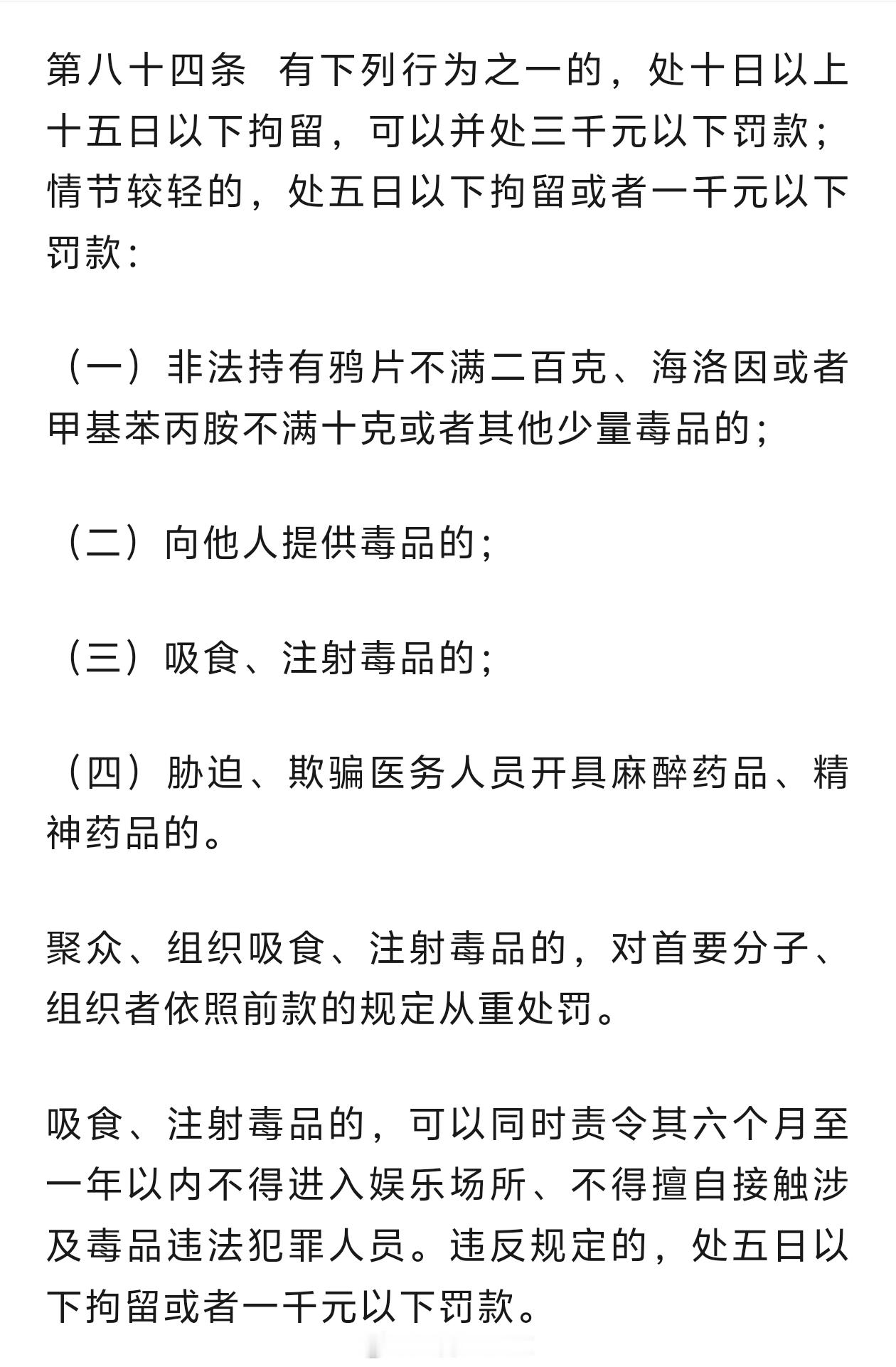 令人发指的治安管理处罚法新规第八十四条!意思是以后毒贩都可以化整为零进行交易,后果仅是15天拘留罚款3000?!甚至配合相关封存规定,连他干过什么别人都没法知道?!!那缉毒警还有必要拼命吗?!!!我靠!!!!!!