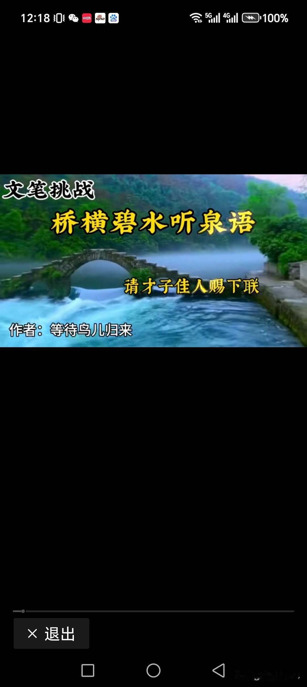 上联:桥横碧水听泉语 下联:人跨石桥欣倩影