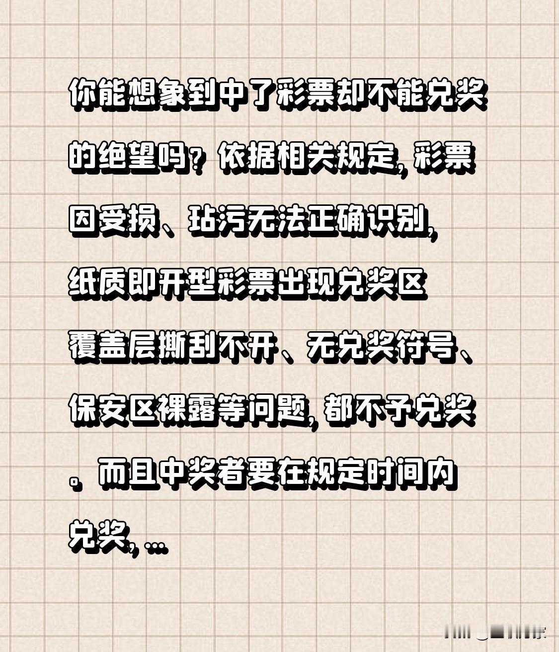 你能想象到中了彩票却不能兑奖的绝望吗?依据相关规定,彩票因受损、玷污无法正确识别