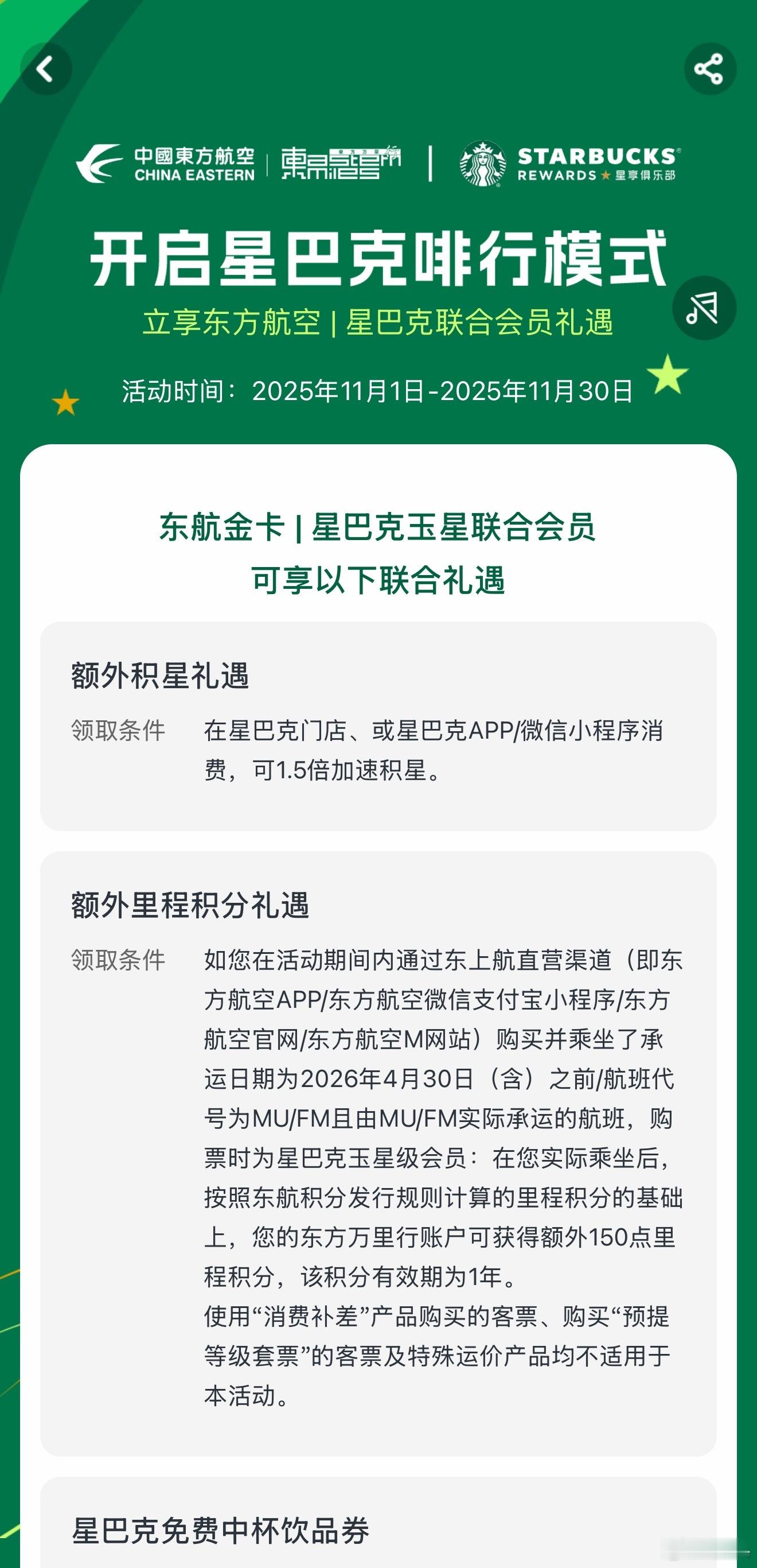 不出意外的话。东航×星巴克的联名活动,下个月不仅要续期,而且还加码搞了个飞行挑战