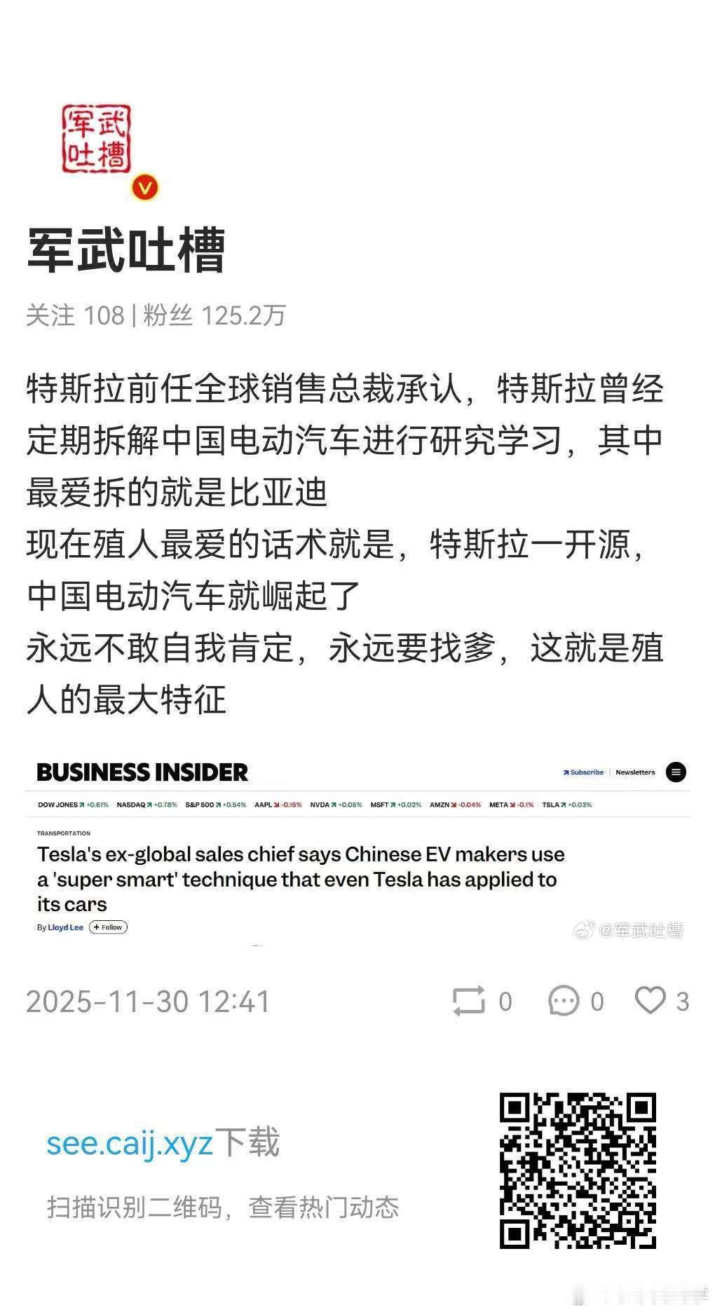 李斌一句:特斯拉会的我都会,不知道被喷了多少年。特斯拉把比亚迪的拿回去研究,某些人:嗐,那能一样吗?肯定是看你们中国车企有没有偷工减料!水哥有话说