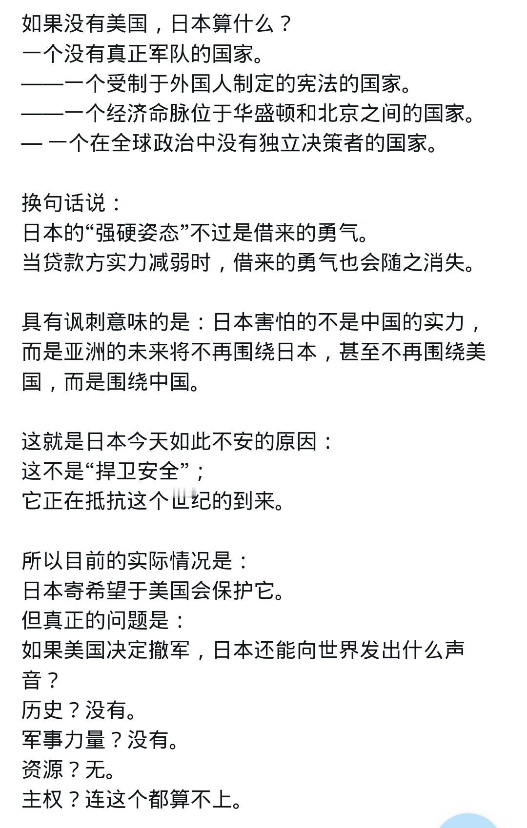 这篇推文是路透社观点的展开! 此前,路透用了将近5000字来描述这场戏剧, 真相就一句话: “对于美国,日本向来是工具或筹码。” 这就中美日三角关系的缩影。 其它的一切都只是道具和灯光。 李承晚如此,吴庭艳如此,贾尼如此,……泽连斯基如此,这就是工具人的命运! Source: X